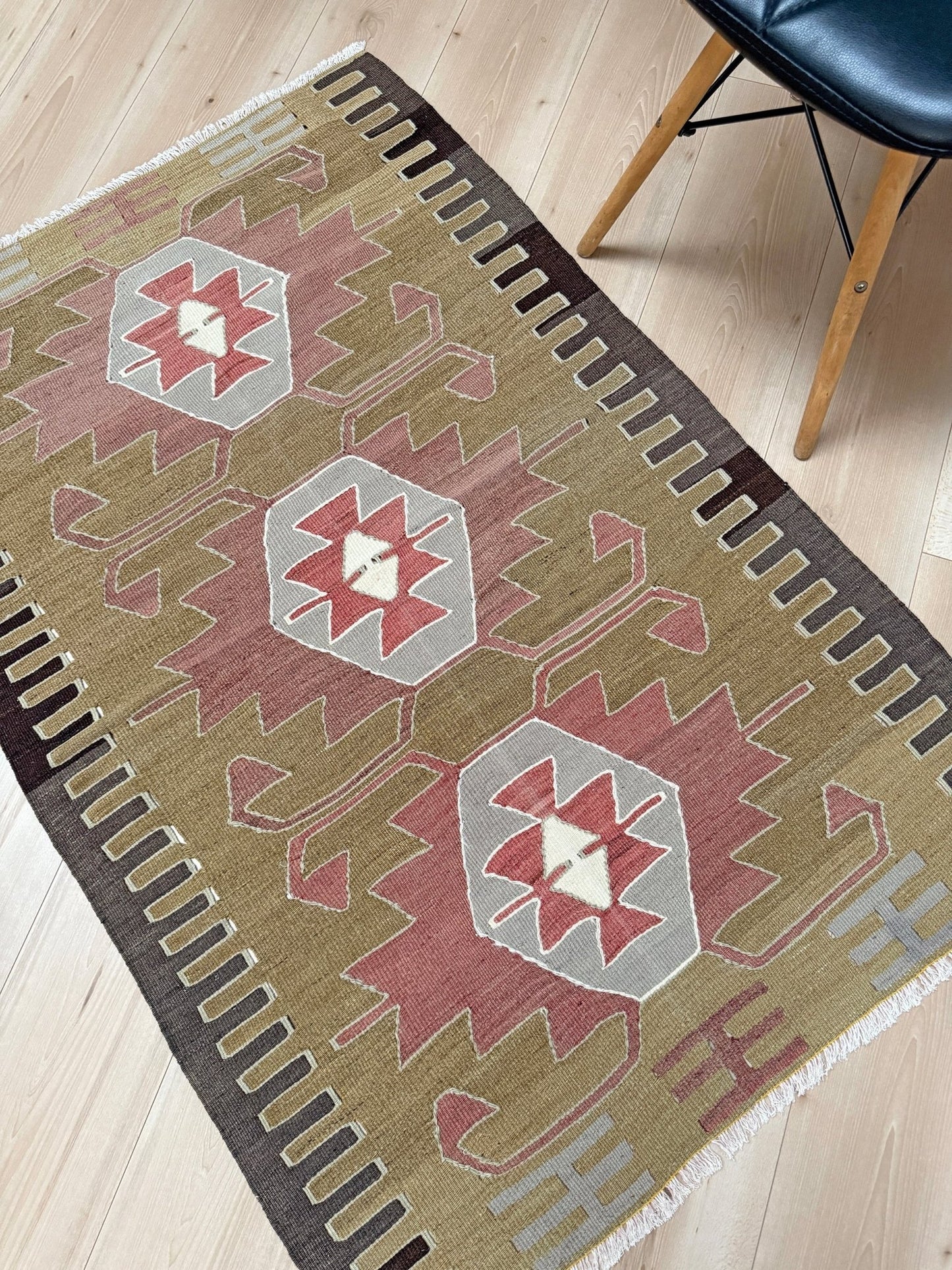 Green Mut Kilim • Vintage Turkish Flatweave Rug (2'11"x4'5")