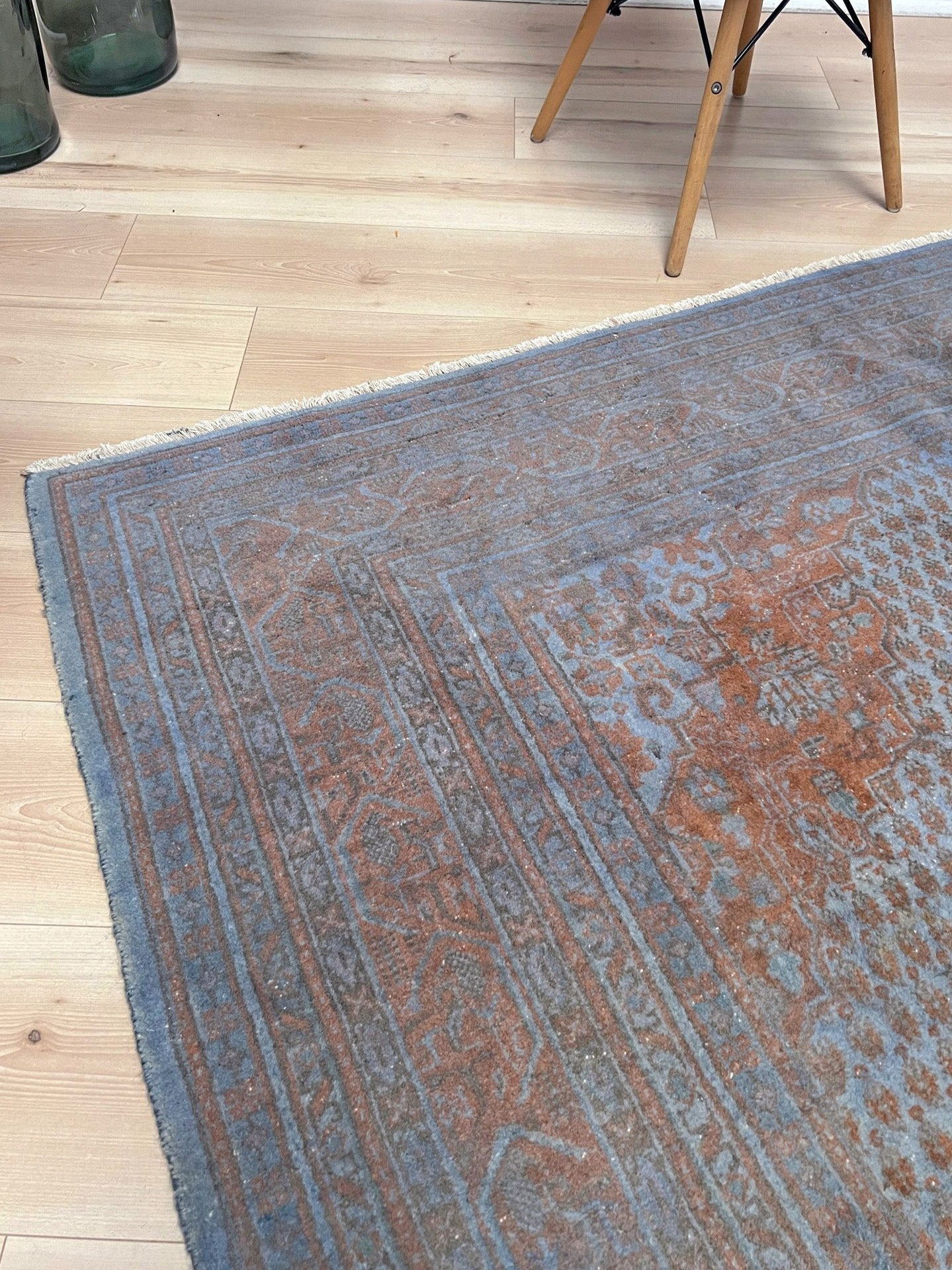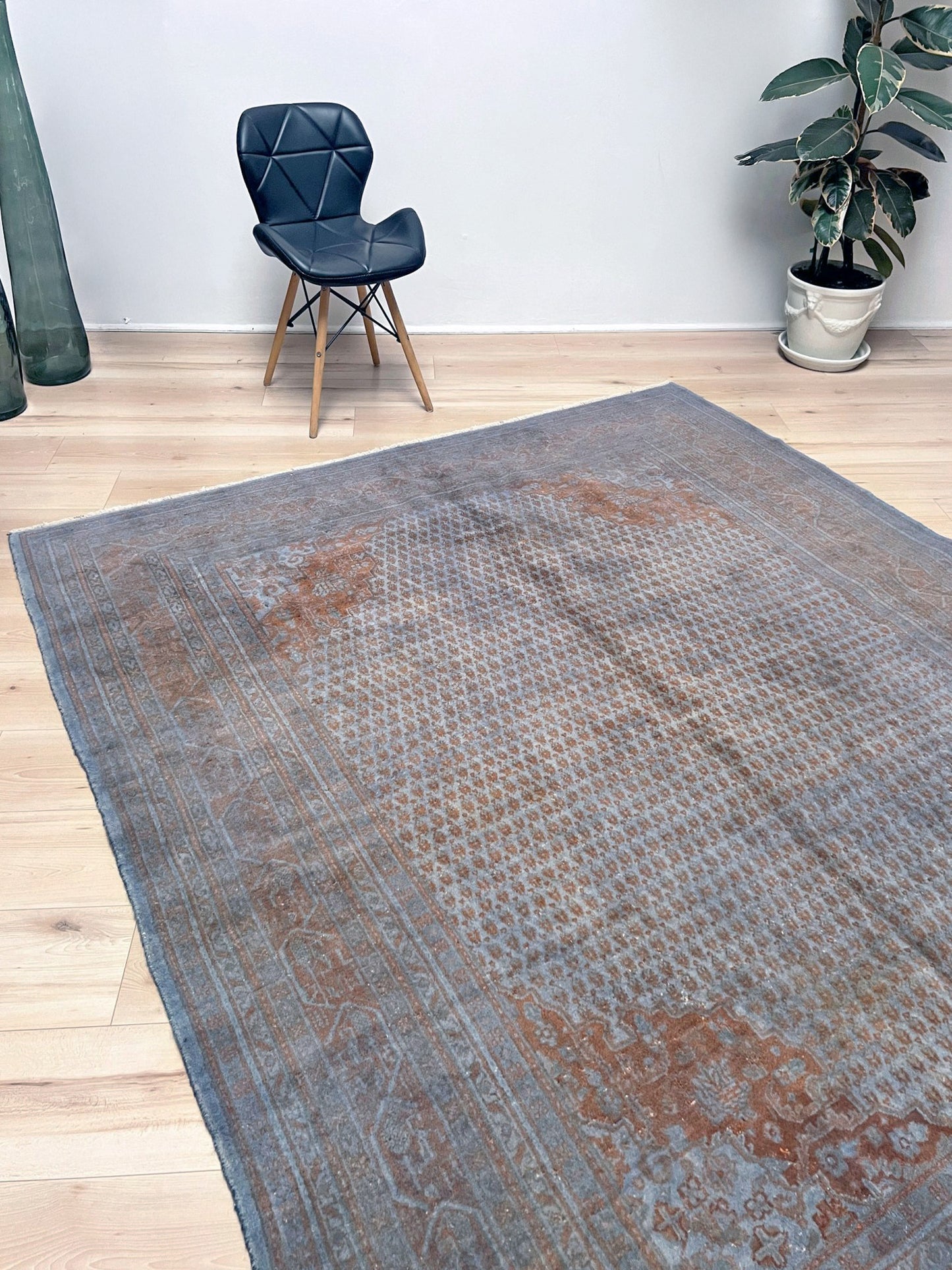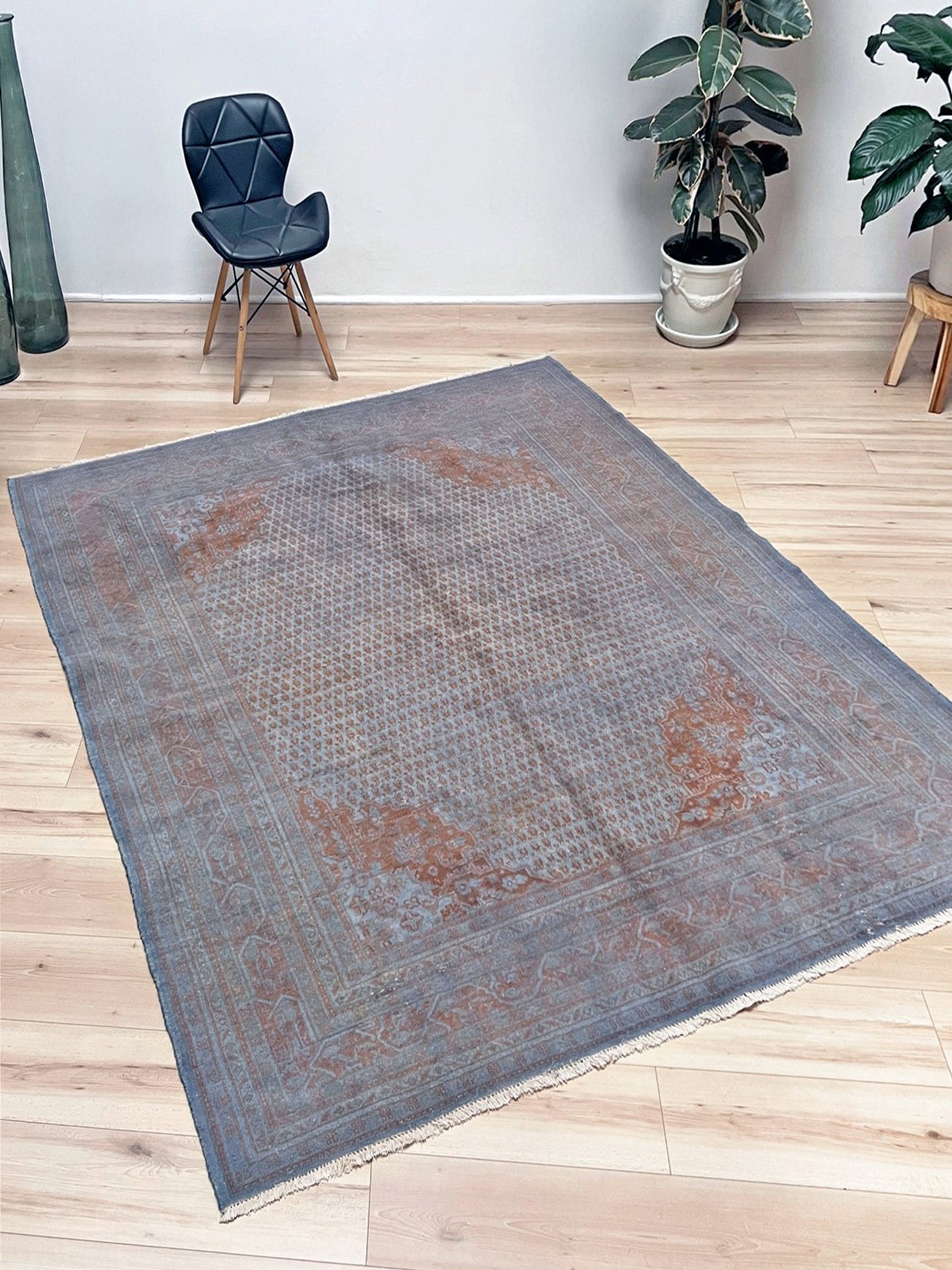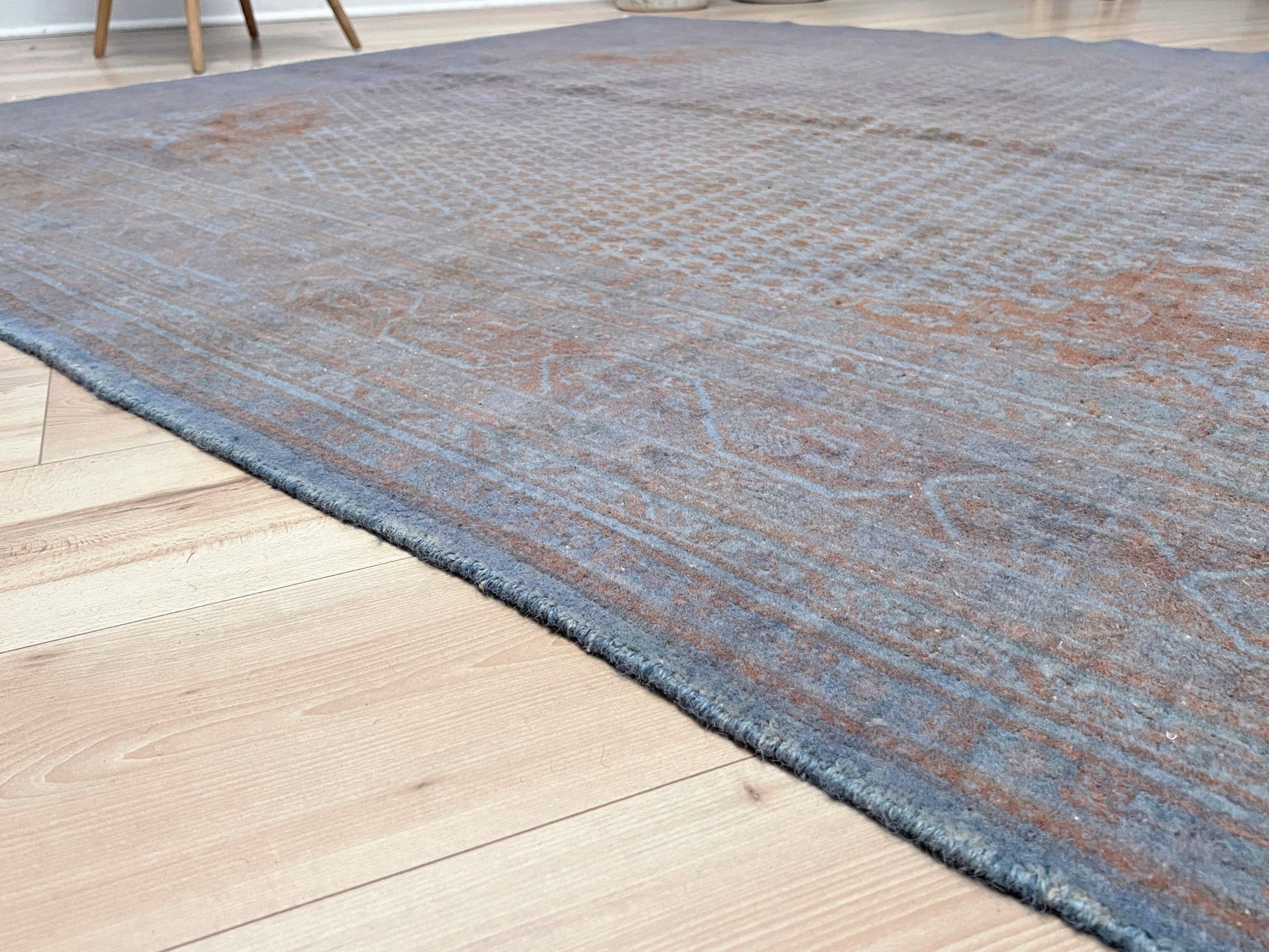 ✔ This Turkish rug has been done through an professional overdyed and distressing process to give it a muted and modern look. Professionally cleaned and ready to enjoy.