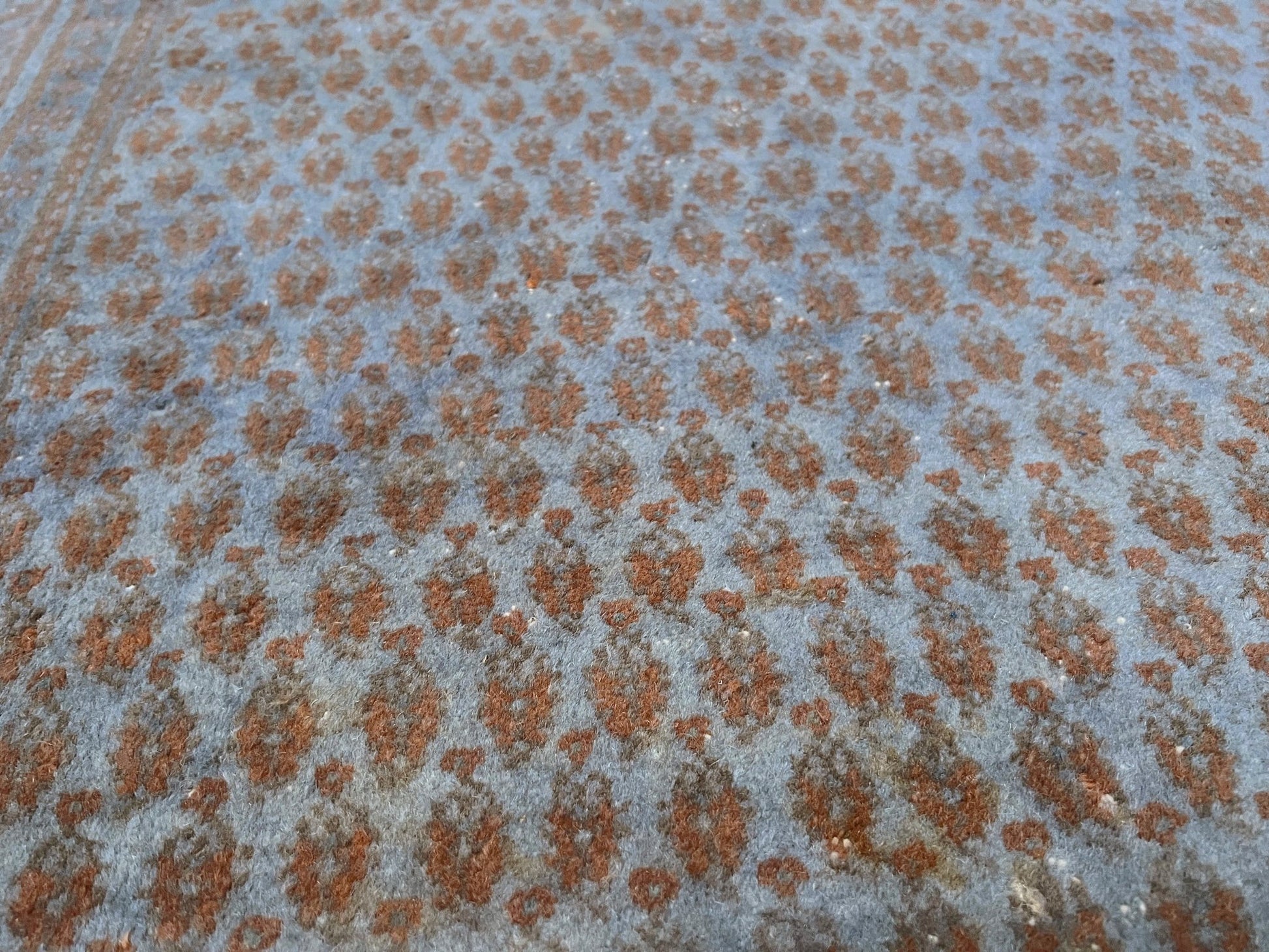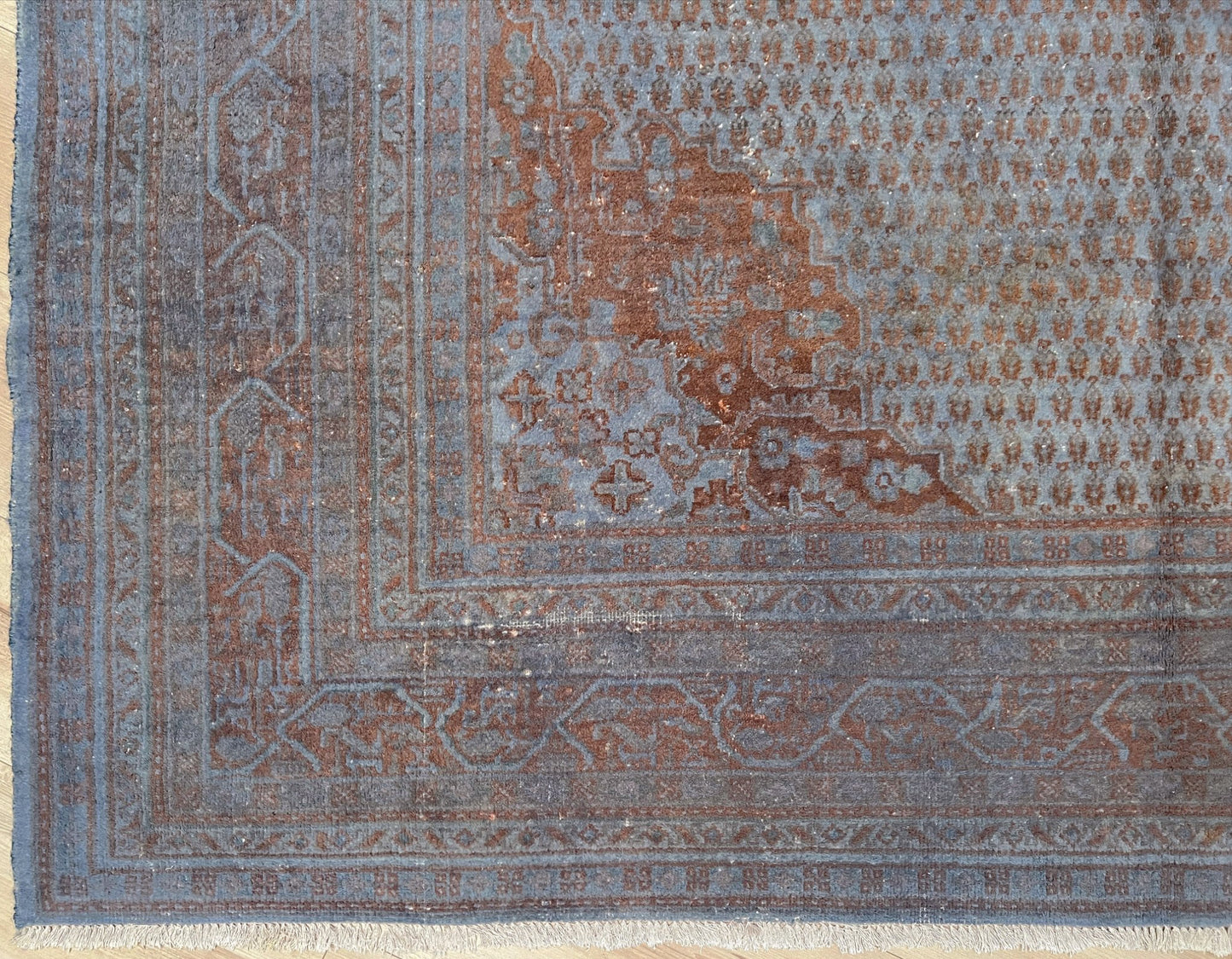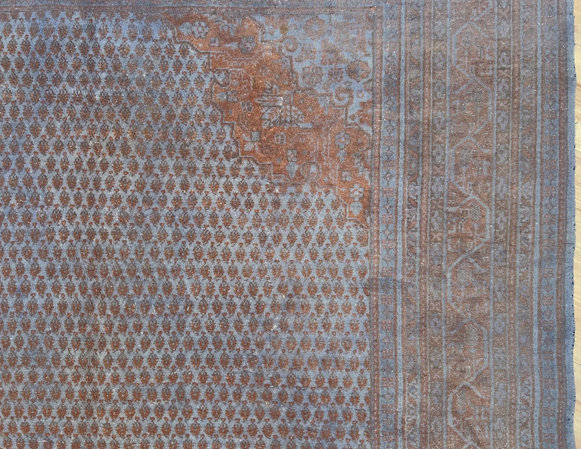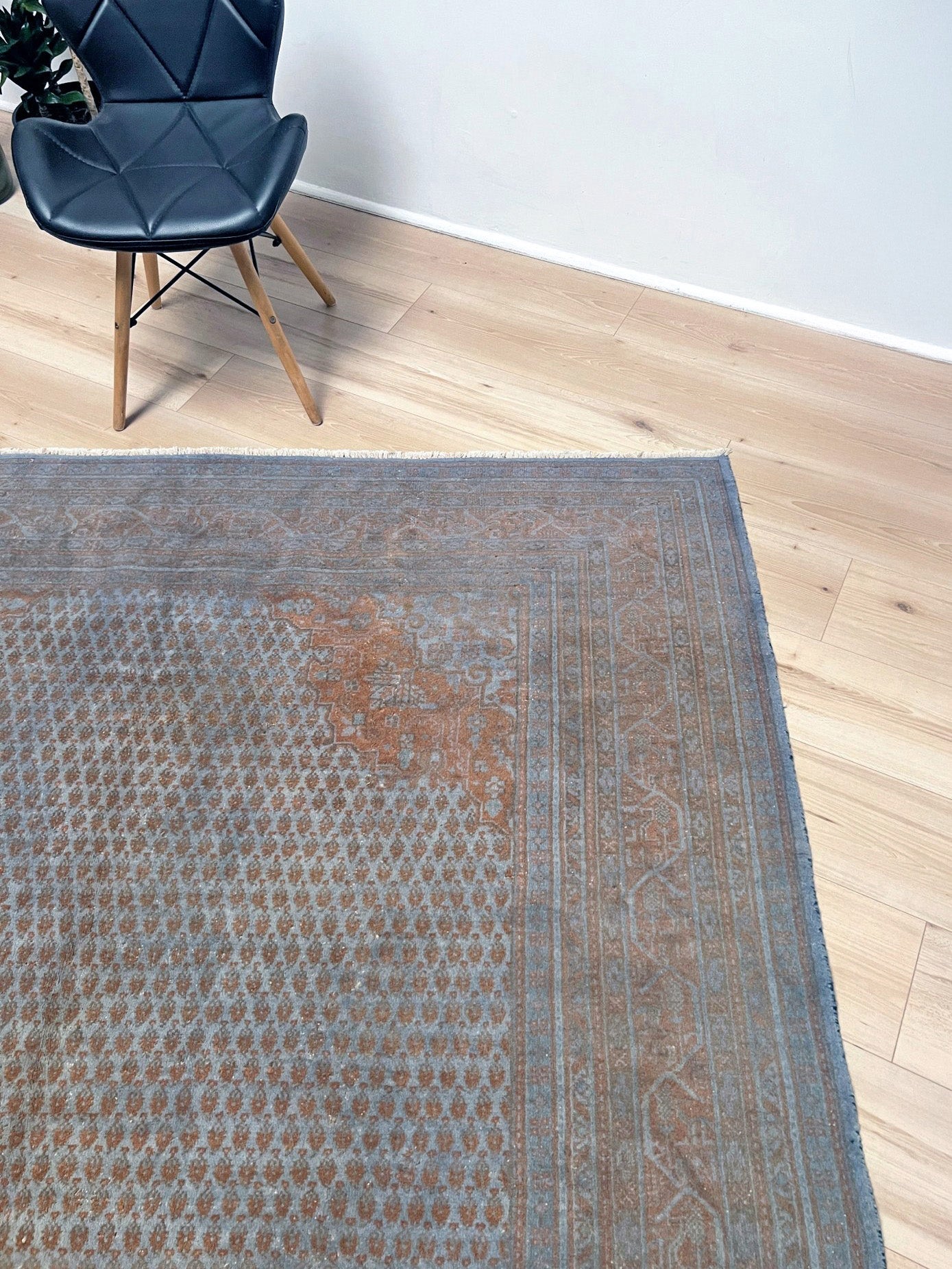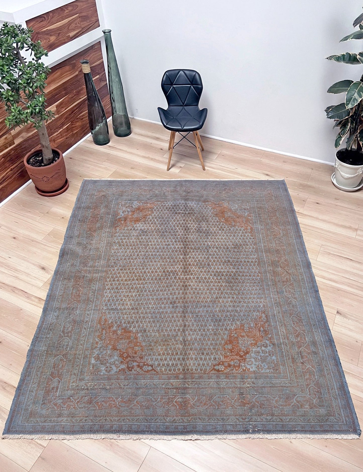✔ This Turkish rug has been done through an professional overdyed and distressing process to give it a muted and modern look. Professionally cleaned and ready to enjoy.