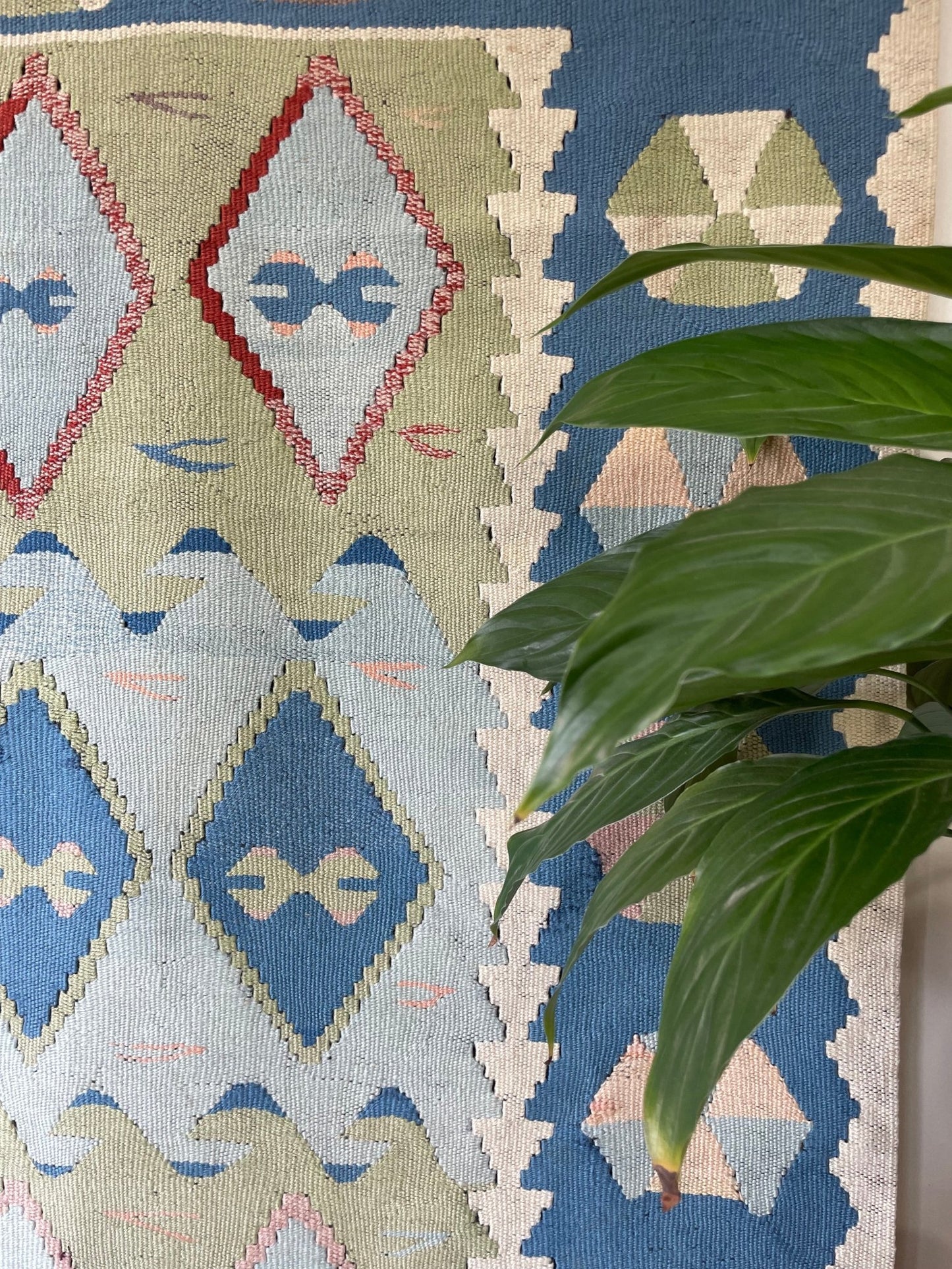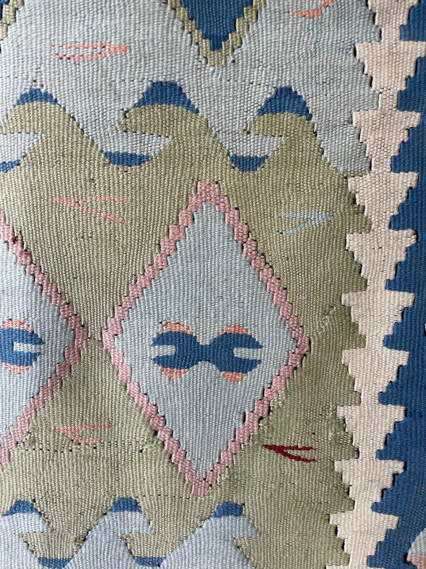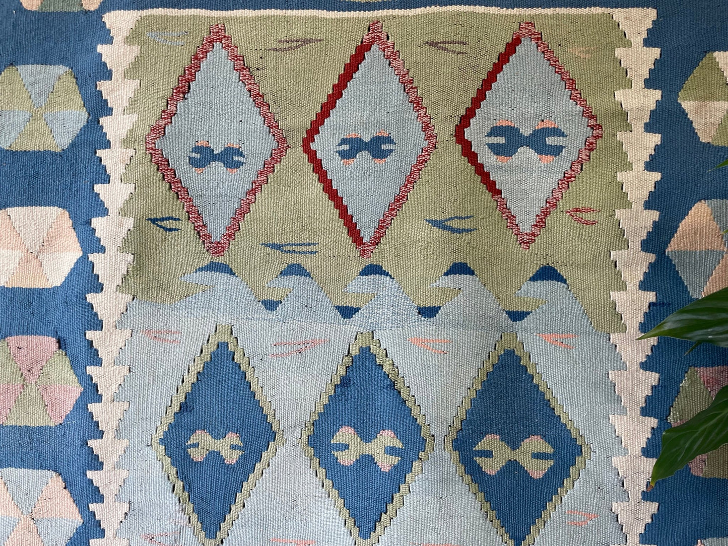 ✔ Handmade almost EIGHT DECADES AGO, this is a perfect example of Kayseri Kilims. This very example is especially unique for its blue and mild green color.