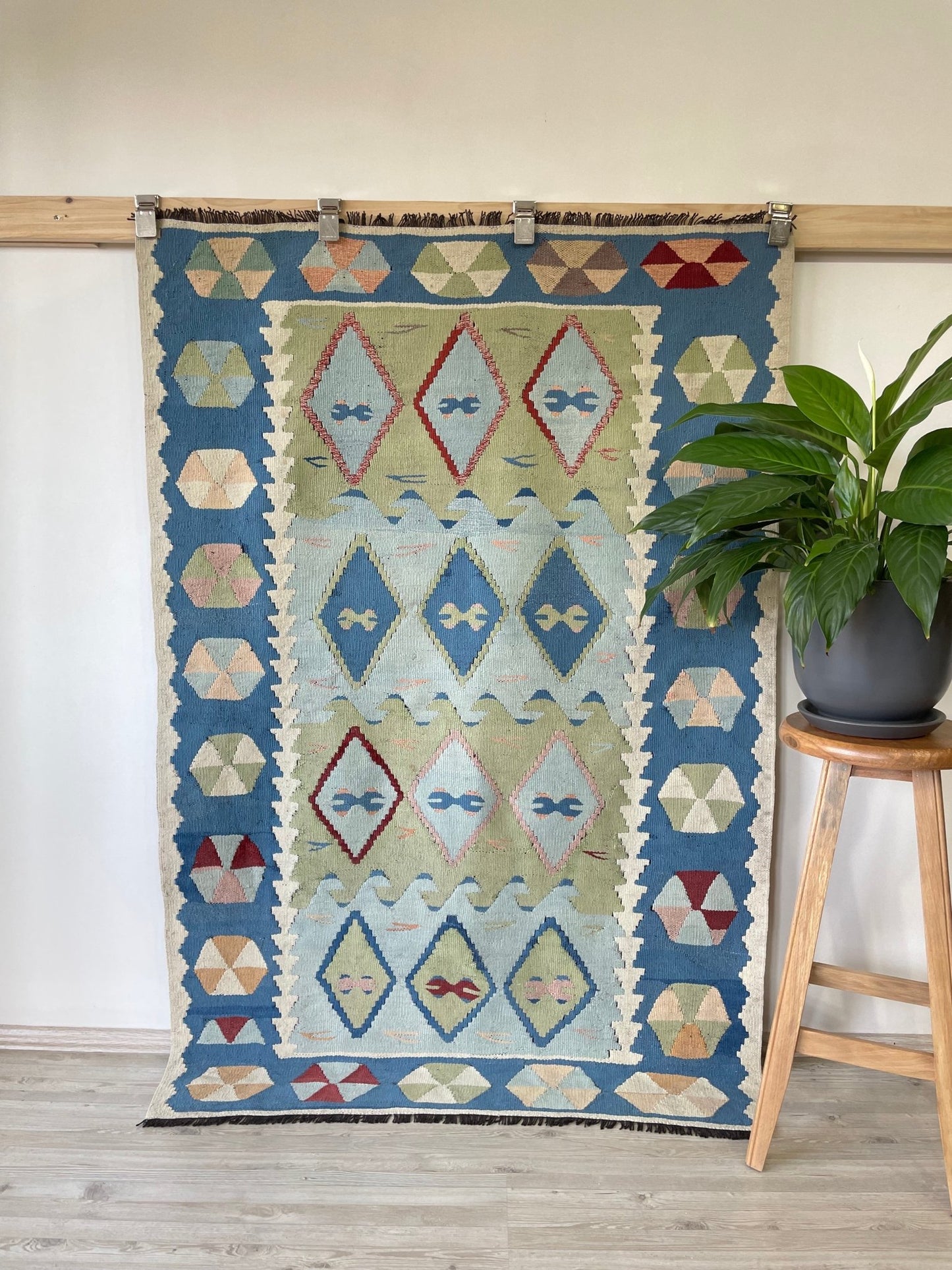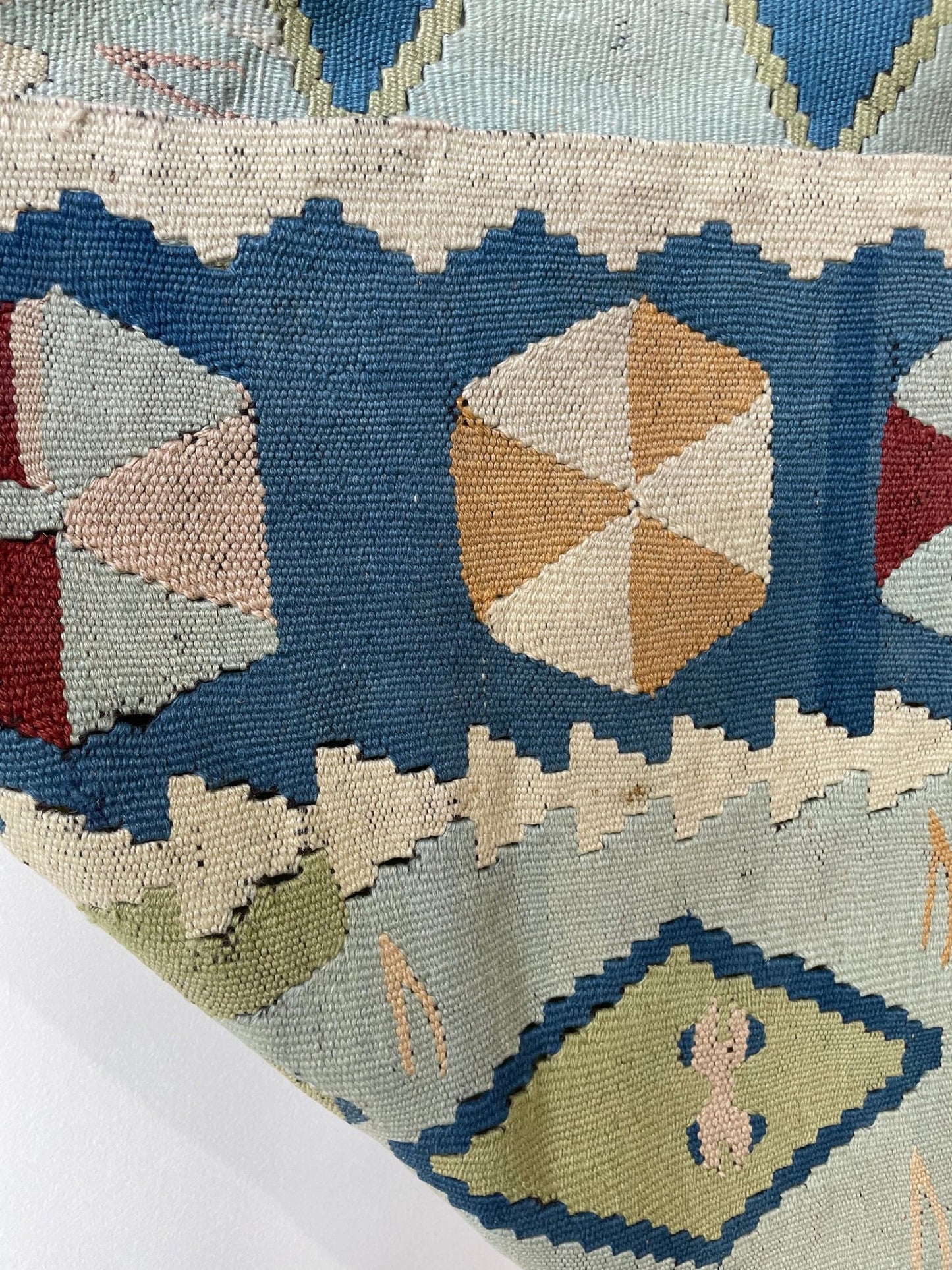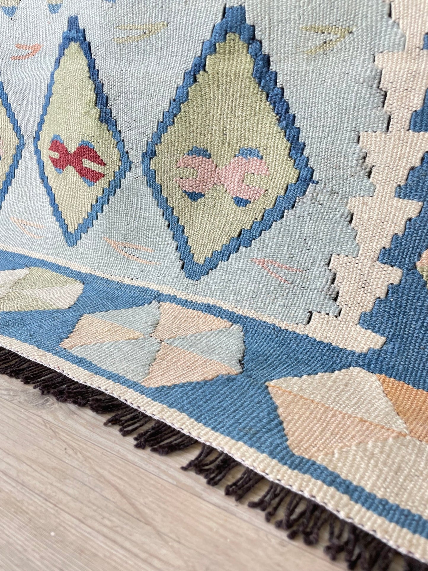 ✔ Handmade almost EIGHT DECADES AGO, this is a perfect example of Kayseri Kilims. This very example is especially unique for its blue and mild green color.