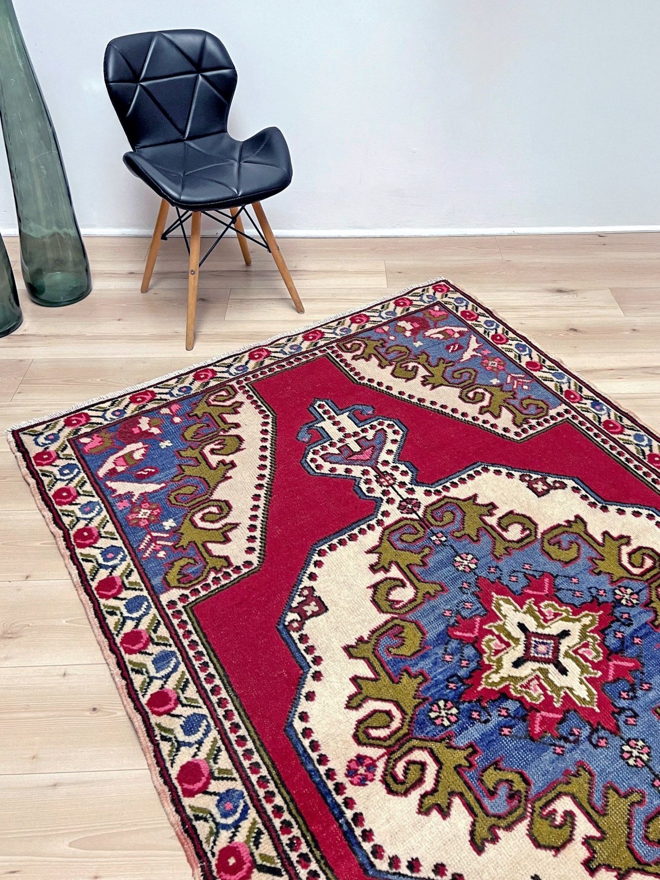 Magden Turkish Rug • Vintage Wool Carpet • 5x7 Handmade Scatter Rug for Living Room, Bedroom, Dining, Kitchen, Study & Office