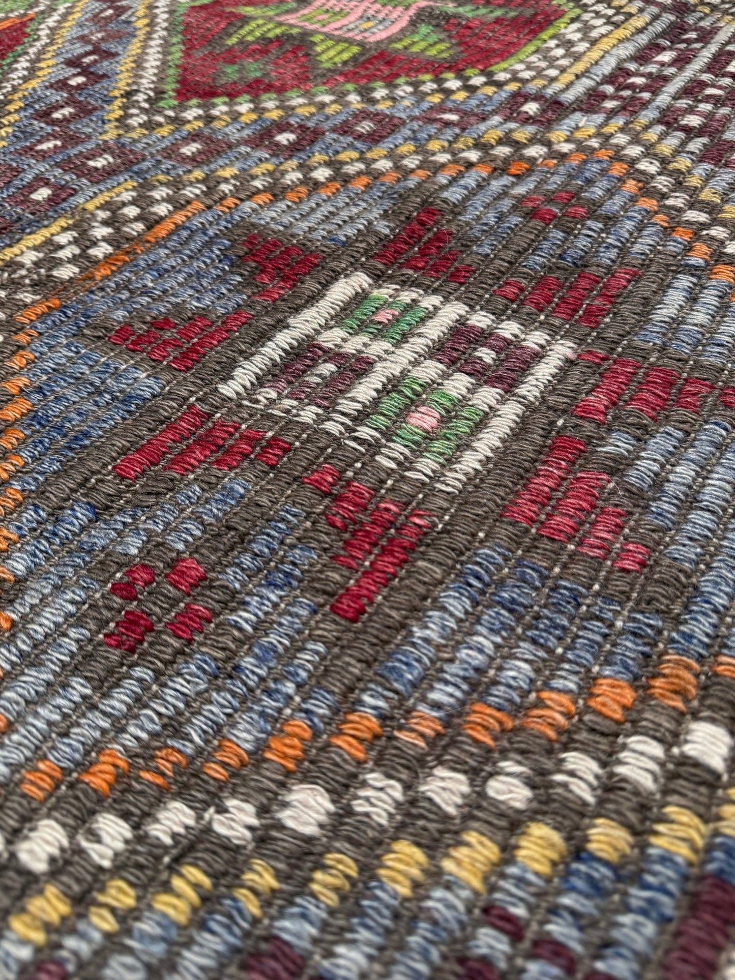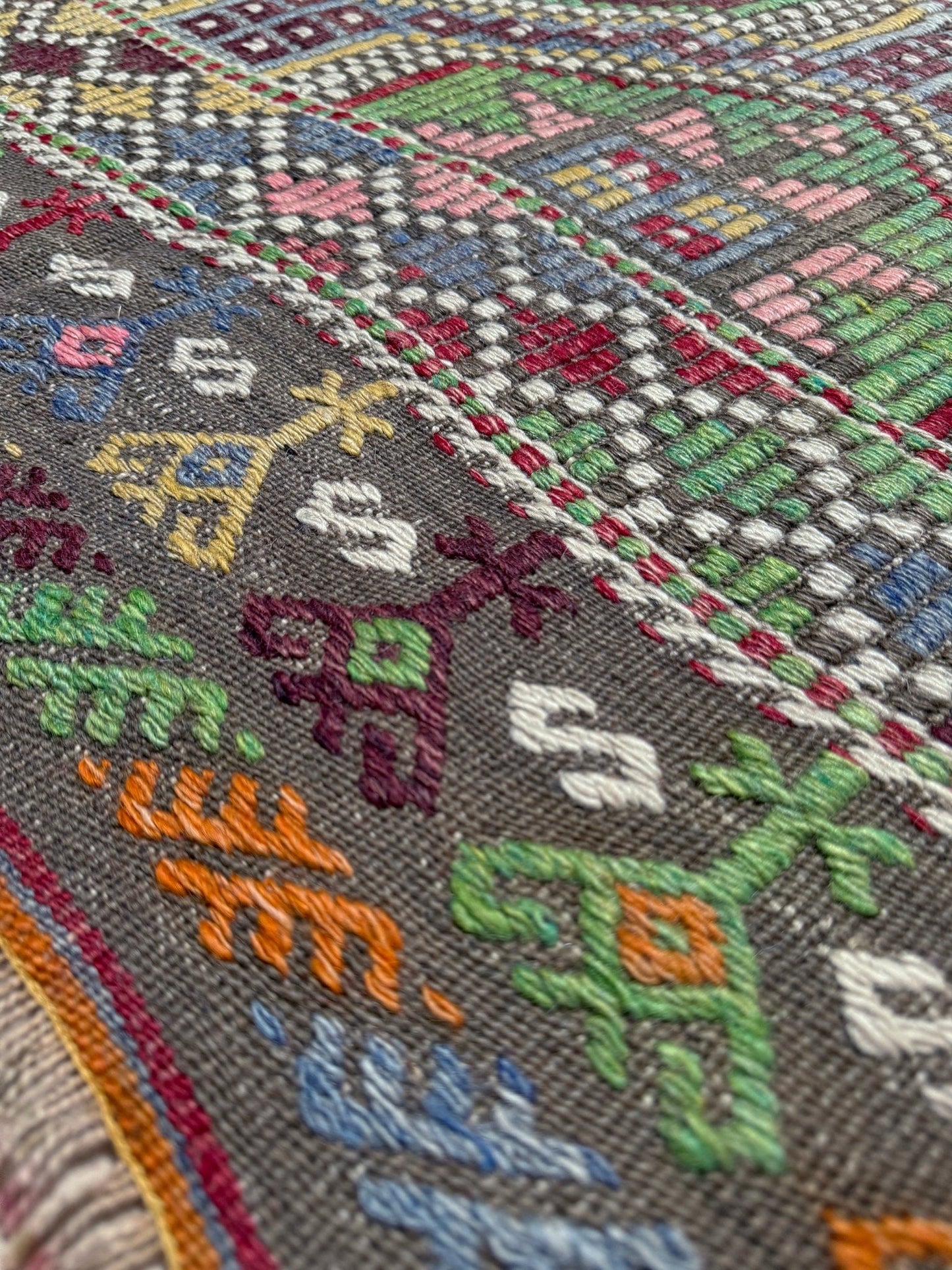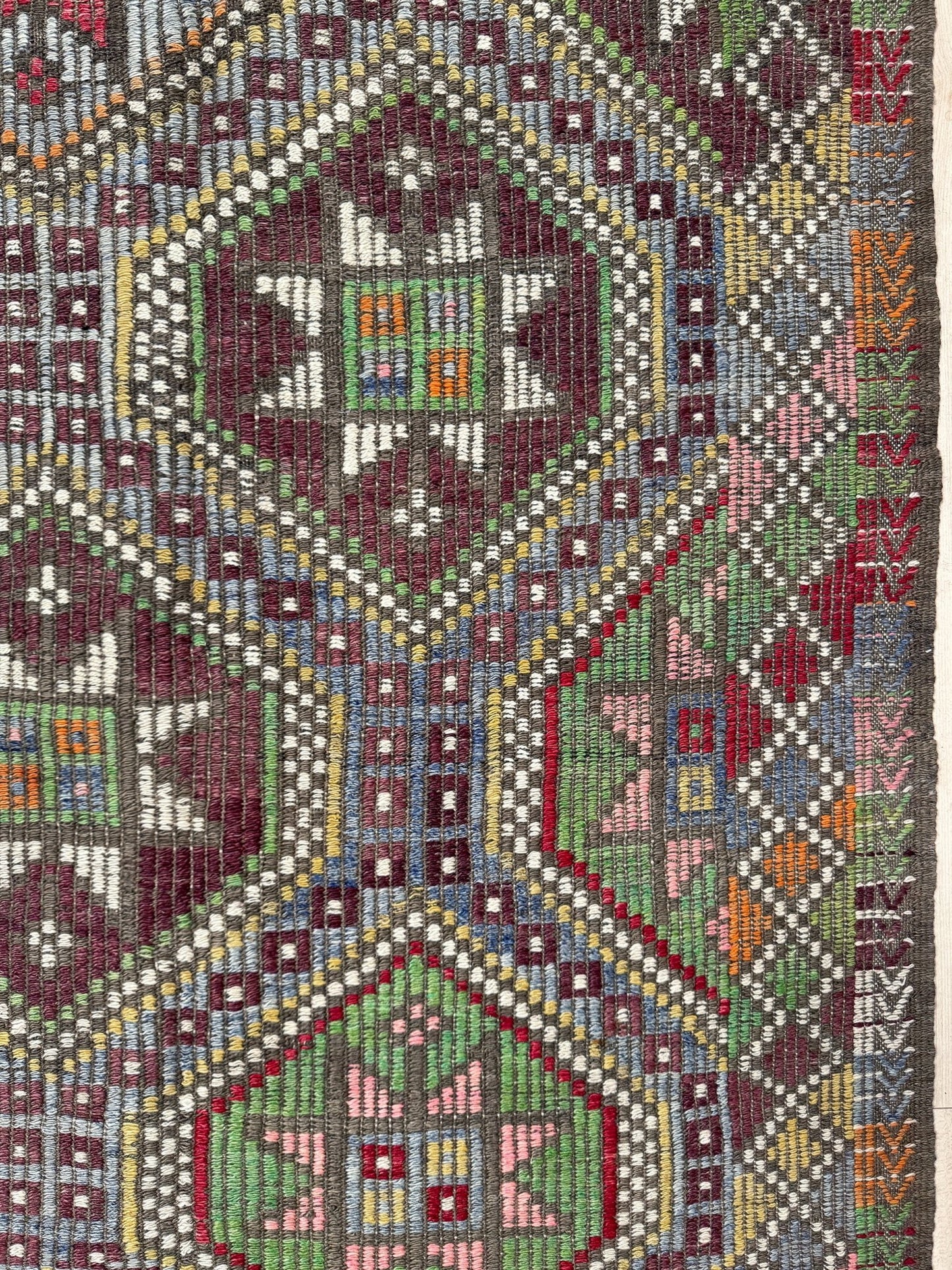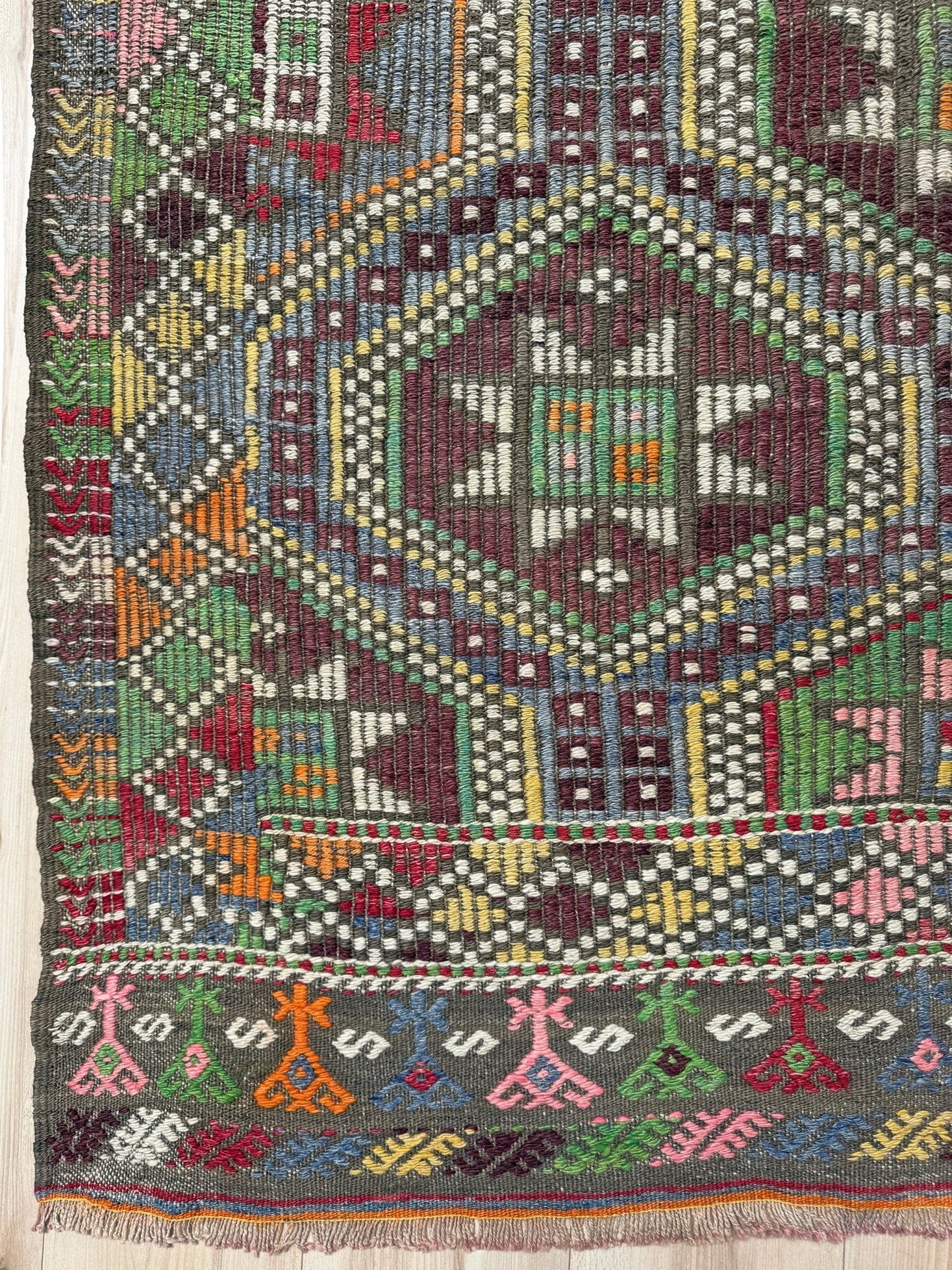 Zili Cicim Embroidered Vintage Turkish Kilim Rug • Handmade Flatweave Wool Carpet • 6x9 Geometric Tribal Rug for Living Room, Bedroom, Dining, Kitchen & Nursery