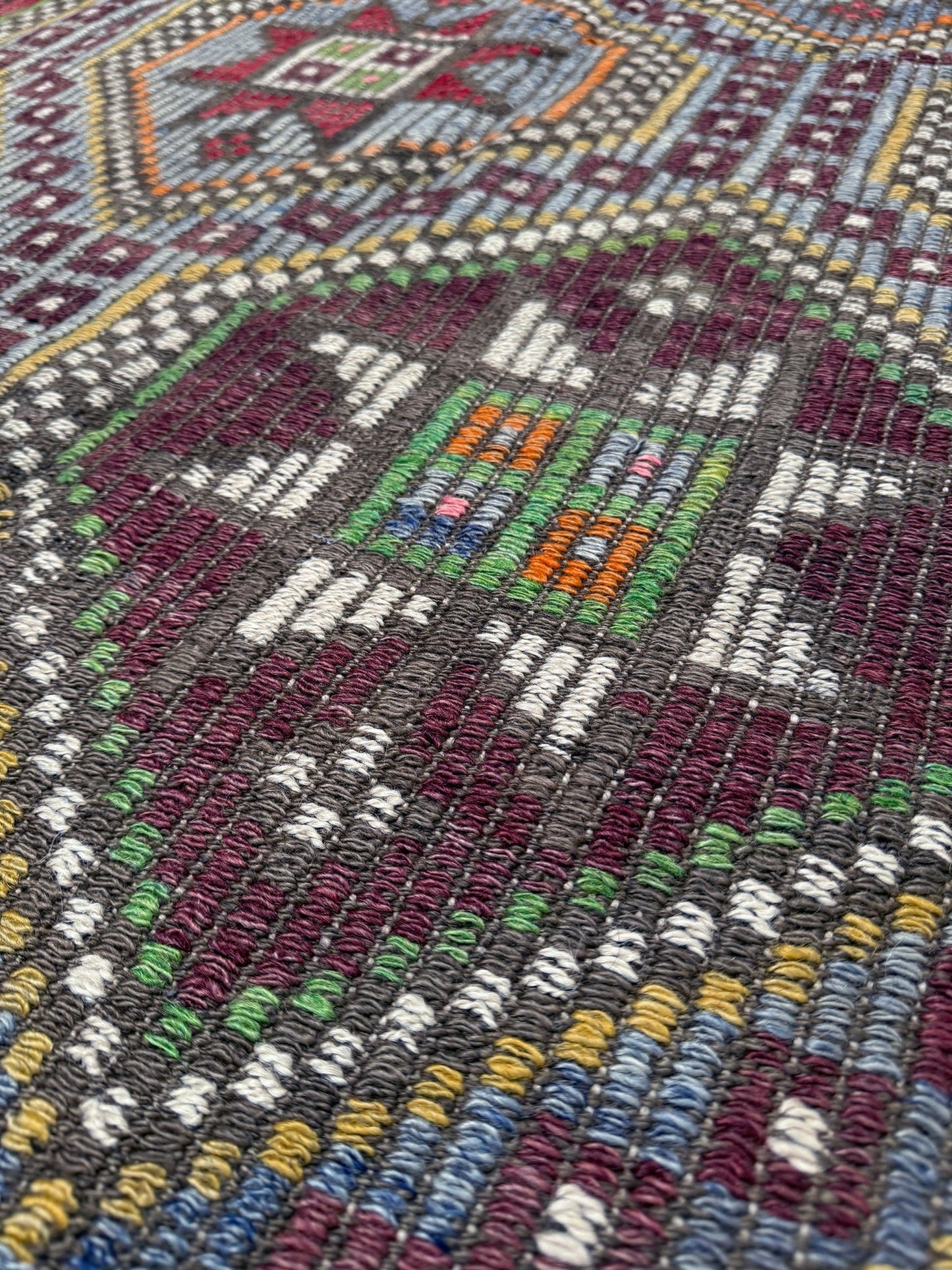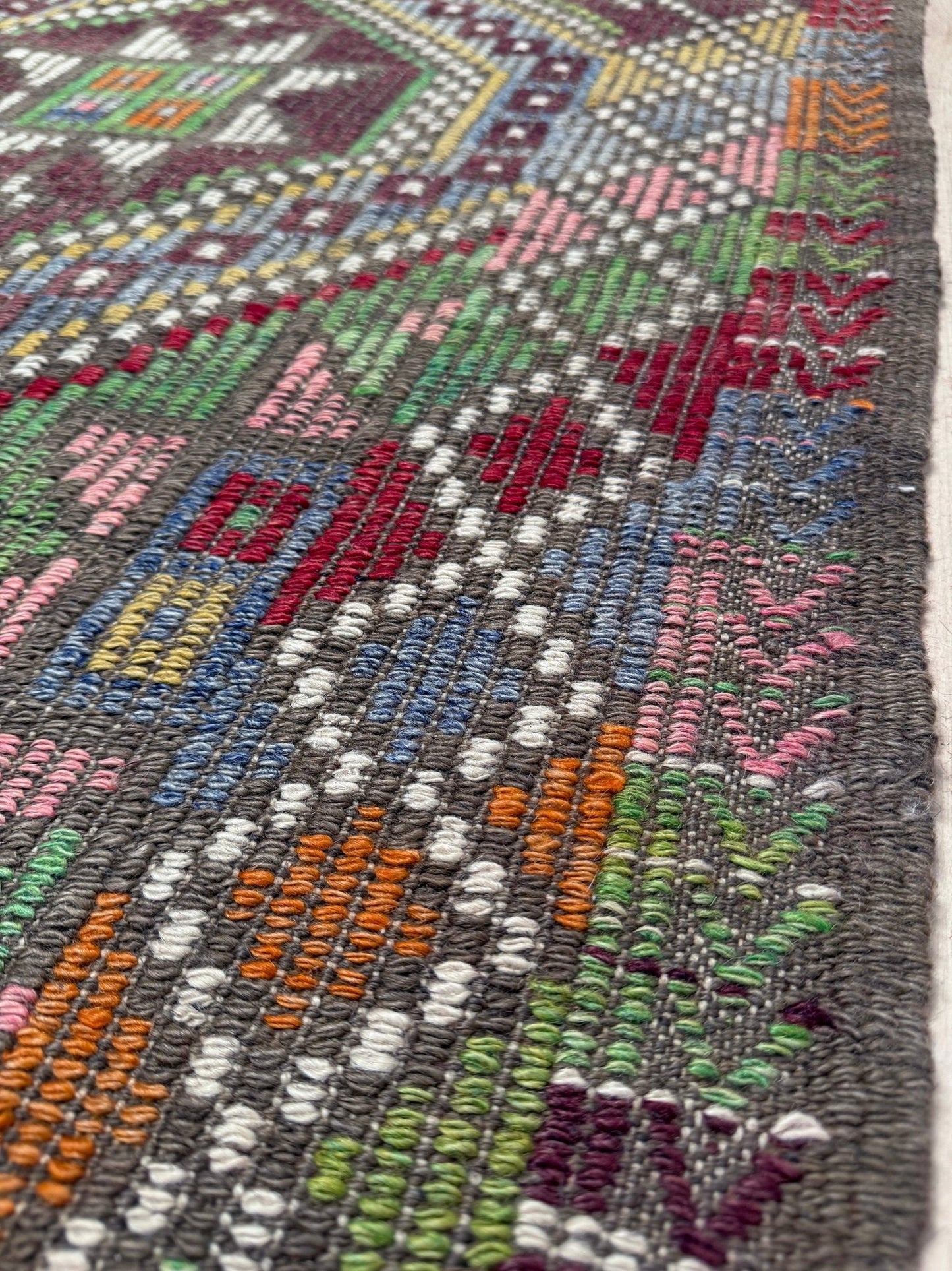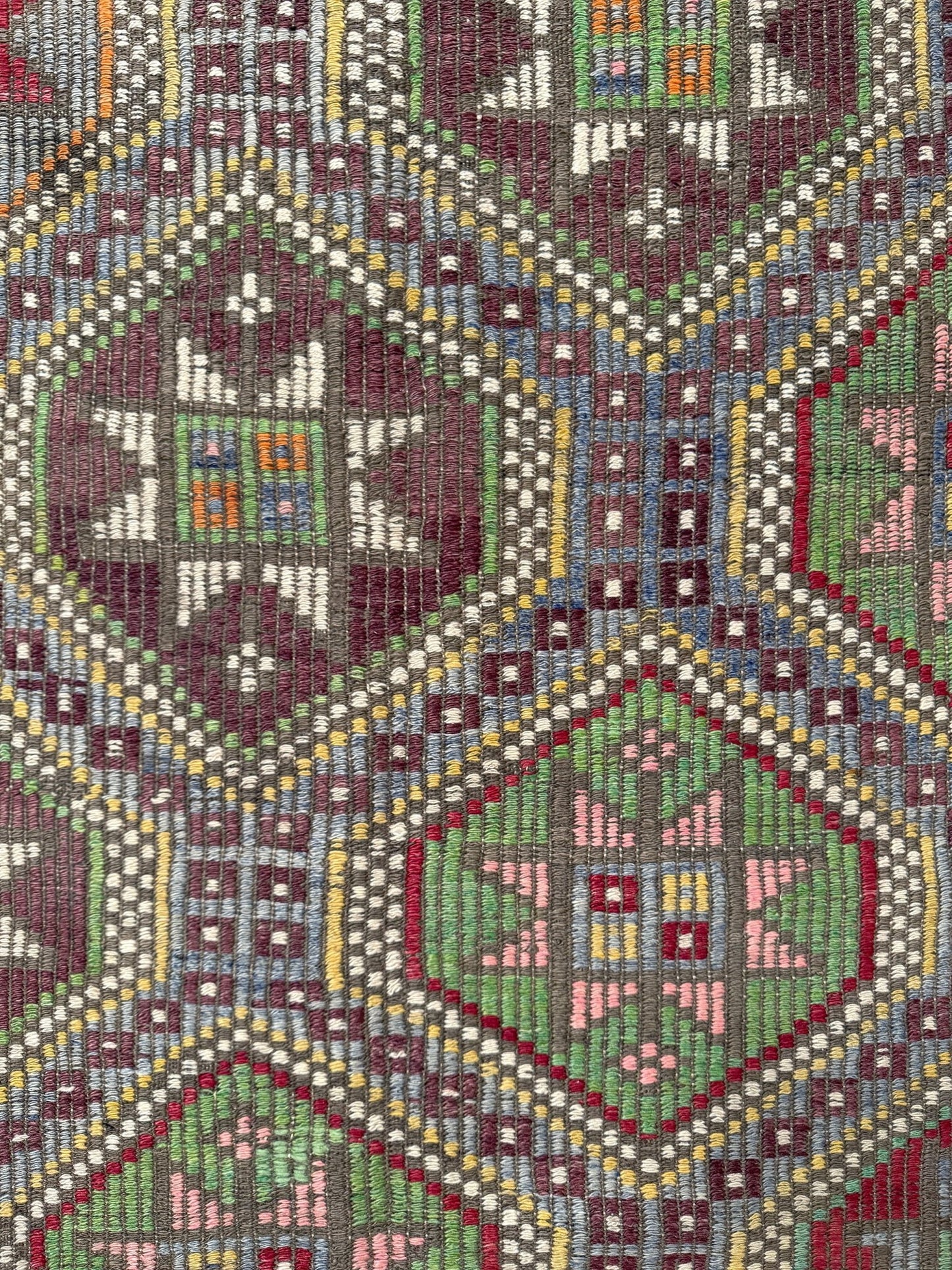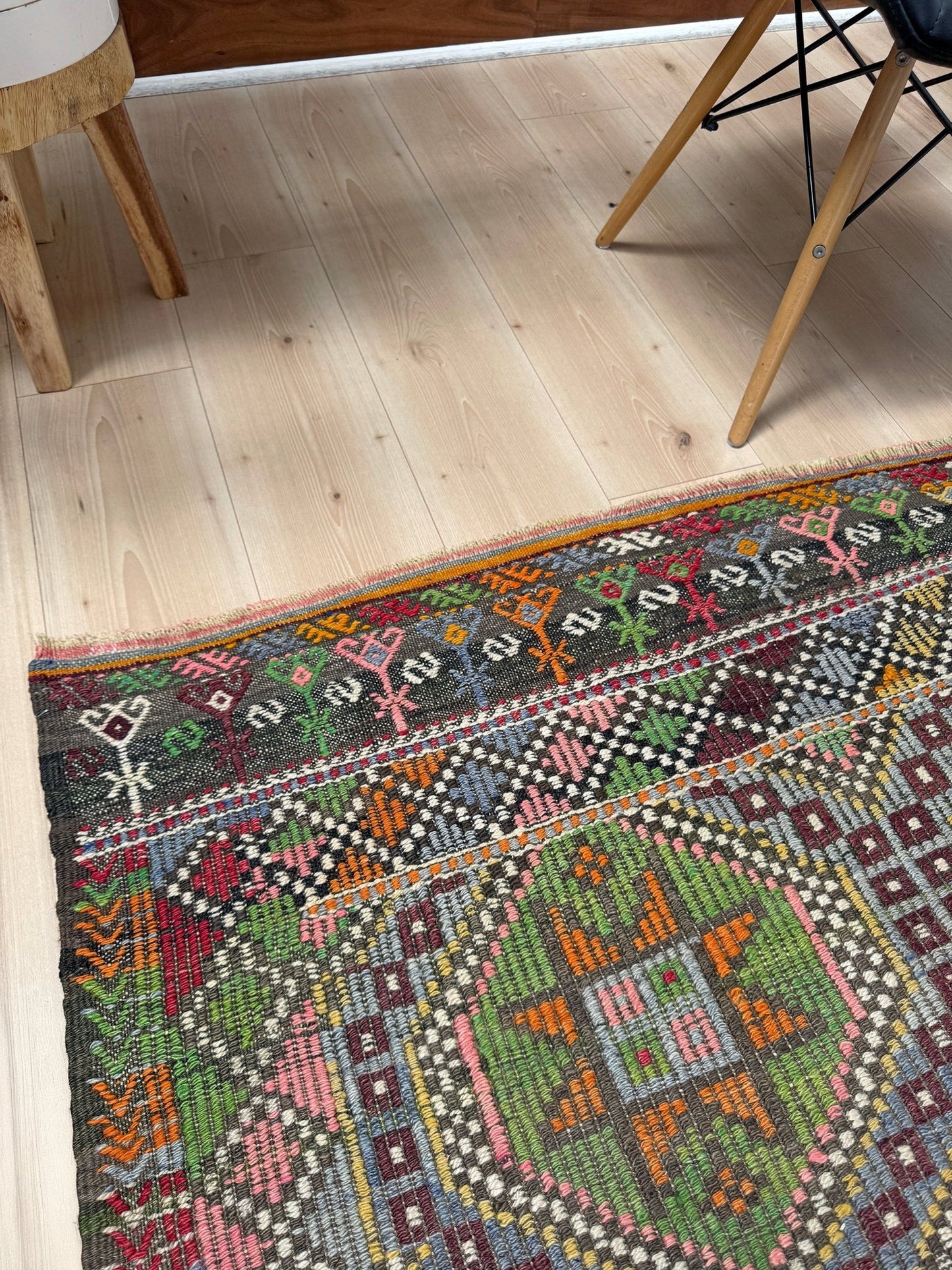 Zili Cicim Embroidered Vintage Turkish Kilim Rug • Handmade Flatweave Wool Carpet • 6x9 Geometric Tribal Rug for Living Room, Bedroom, Dining, Kitchen & Nursery