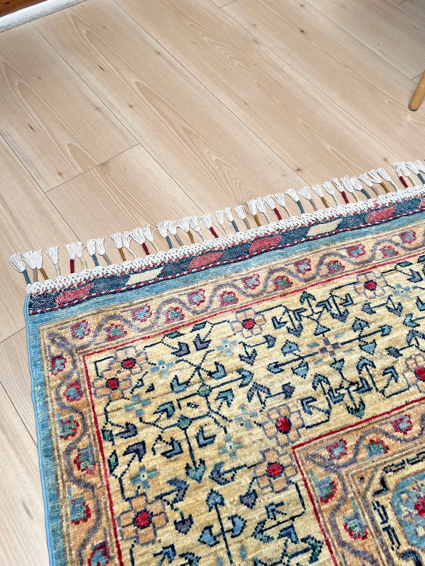 *Color of a handmade rug is sensitive to the light it gets. Therefore, the rug may appear slightly differently depending on the lighting of your place.