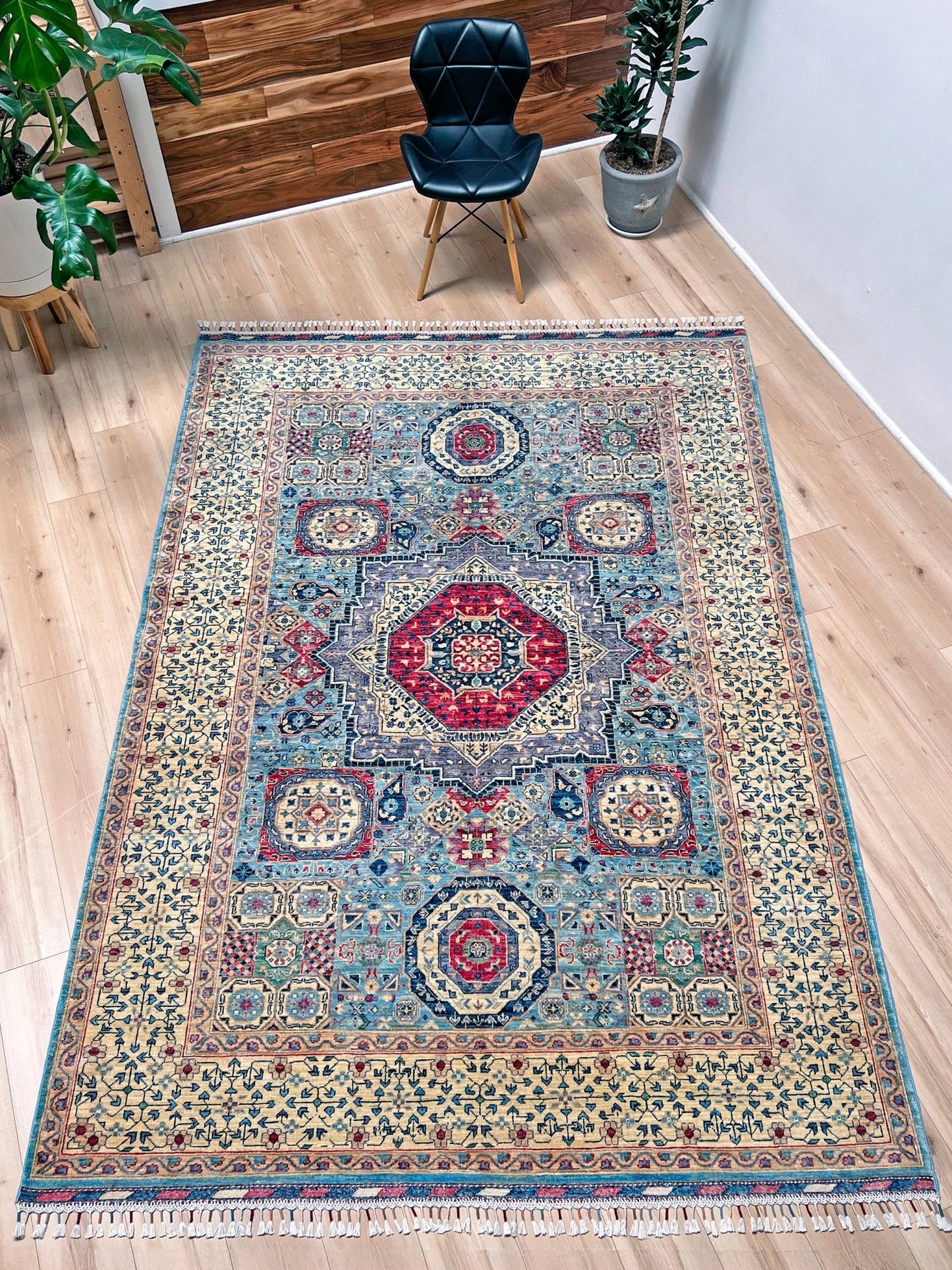 Mamluk Luxury Area Rug • Handmade Wool Contemporary Carpet • 7x9 Large Transitional Rug for Living Room, Bedroom, Dining & Office