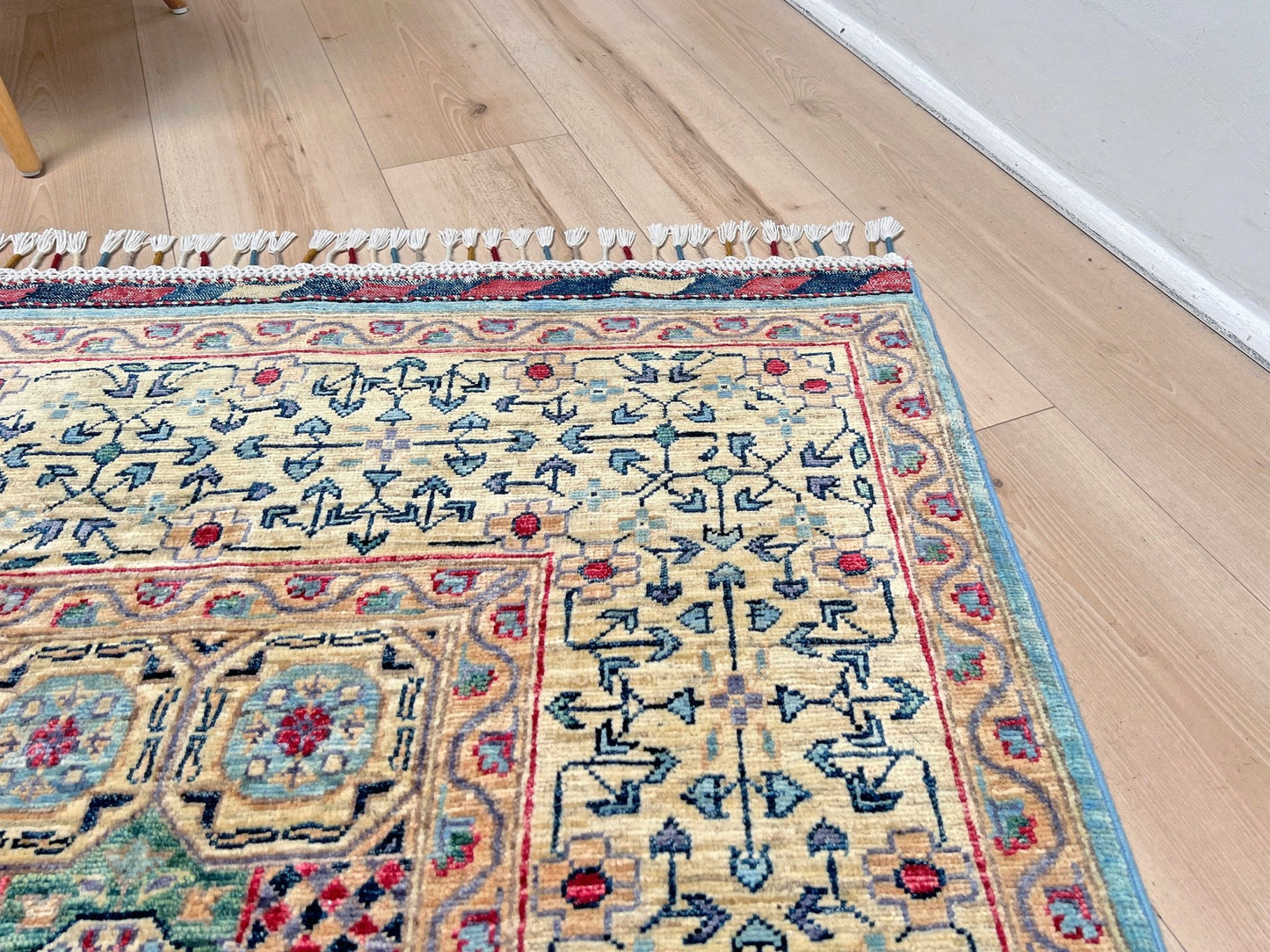 ✔  Crafted from Ghazni wool, known for its silk-like sheen and softness, this Mamluk rug boasts an extraordinary bright color combination.