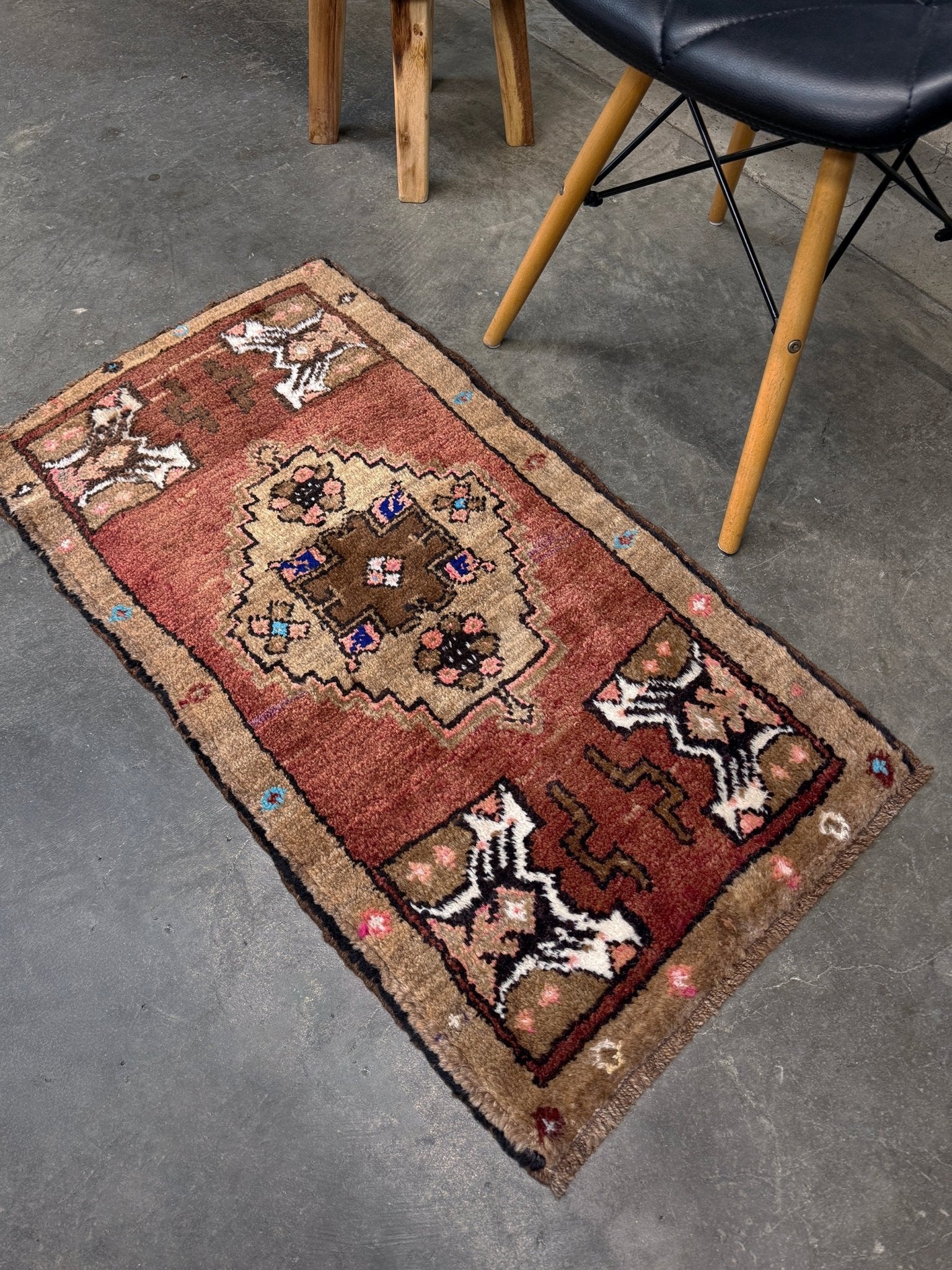 Muted Brick Red Turkish Village Mini Rug / Yastik • Handmade Wool Carpet • 2x3 Small Doormat Scatter Rug for Entry, Bathroom, Bedroom, Kitchen & Study