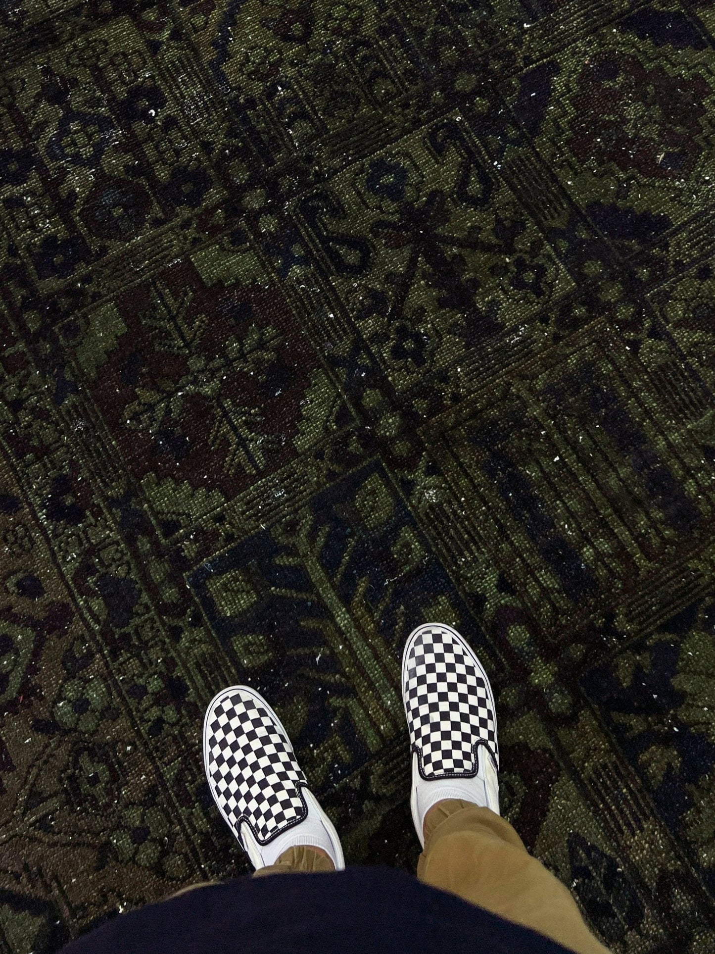 This Bakhtiari Persian Rug is a top quality one. It has been washed by professionals to give it a transitional and muted look with its spectacular dark green color. It has some wear due to its age which gives it a unique character.