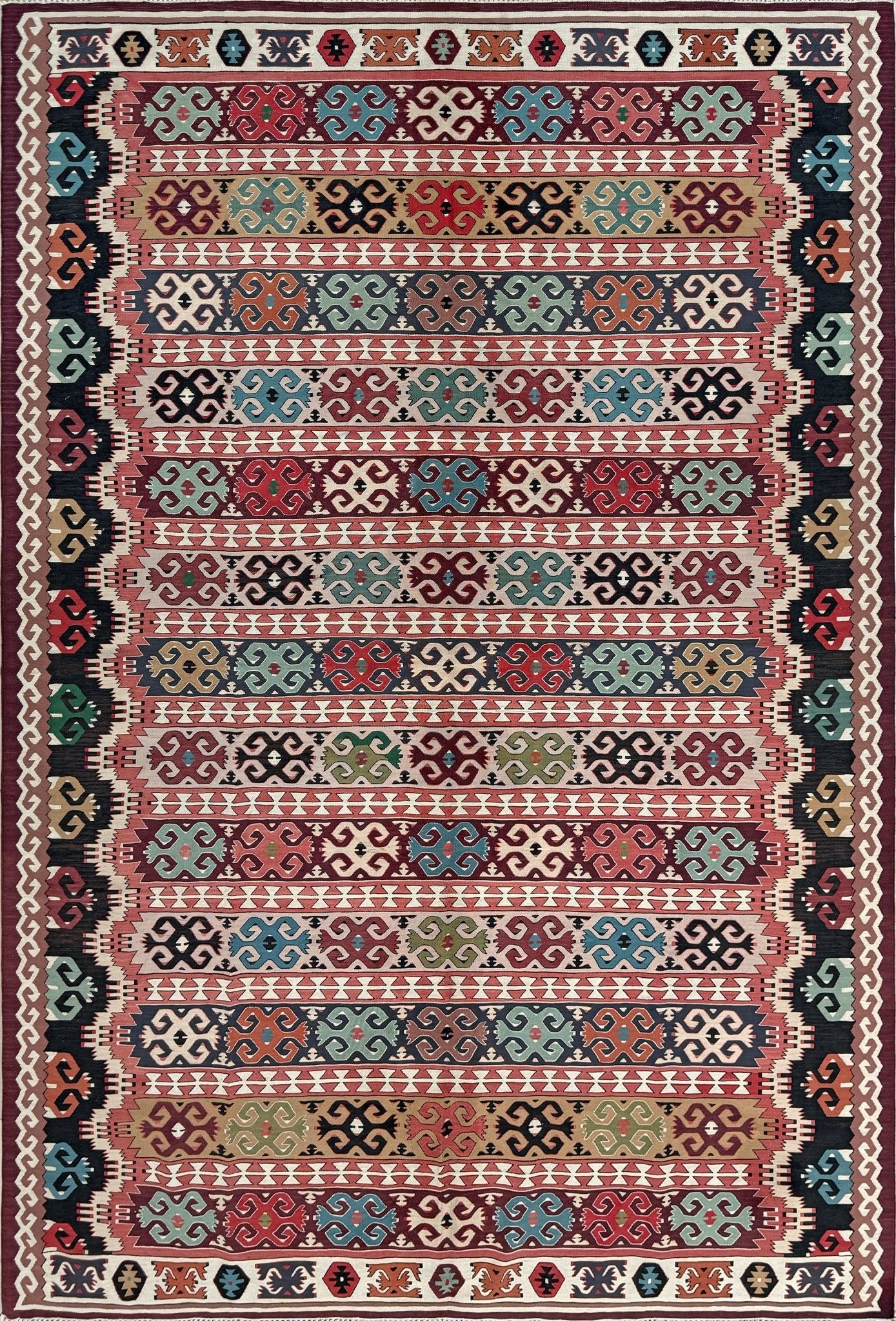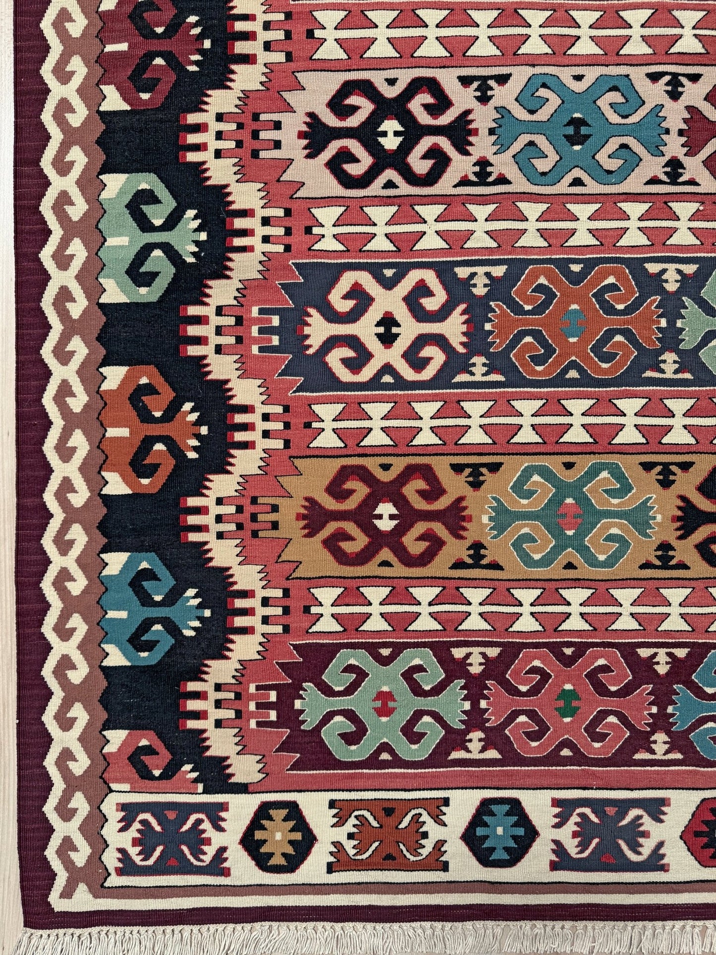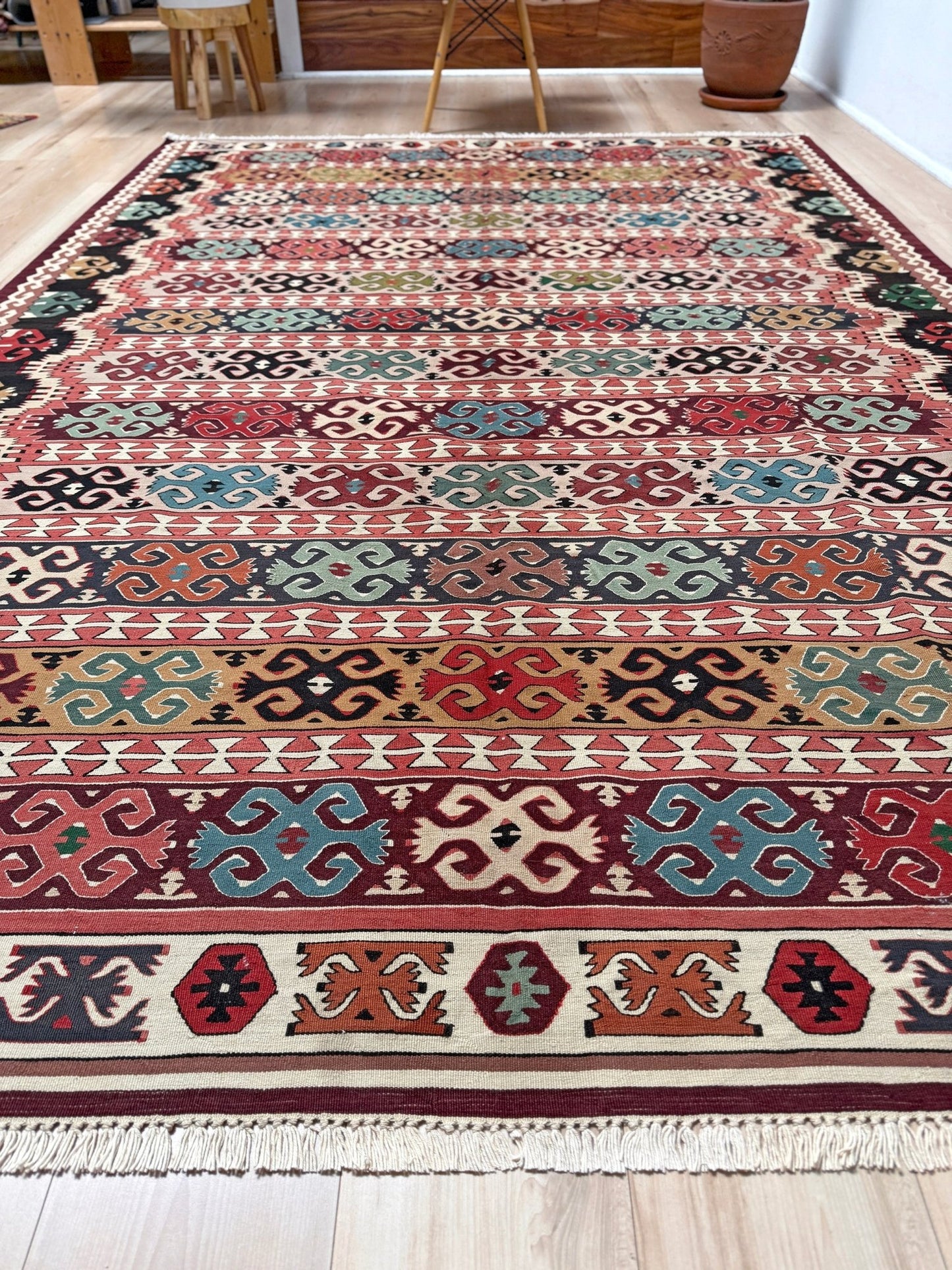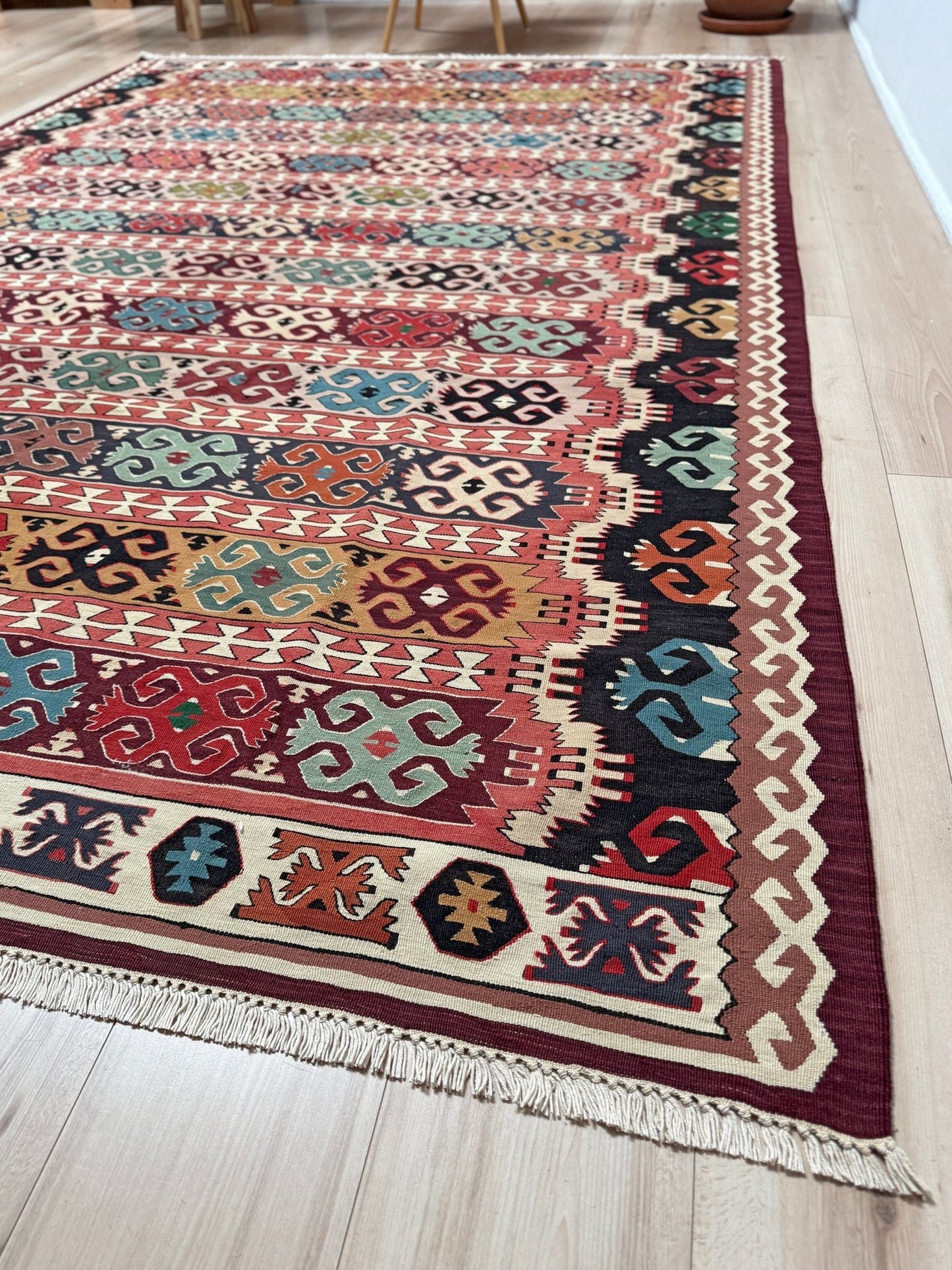 Pirot Vintage European Kilim Rug • Handmade Flatweave Wool Carpet • 6x9 Geometric Rug for Living Room, Bedroom, Dining, Kitchen & Study