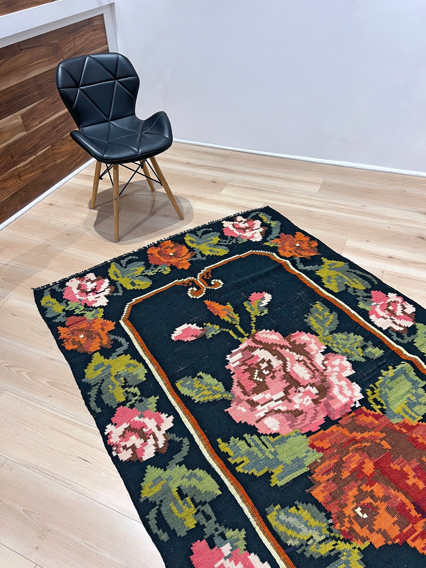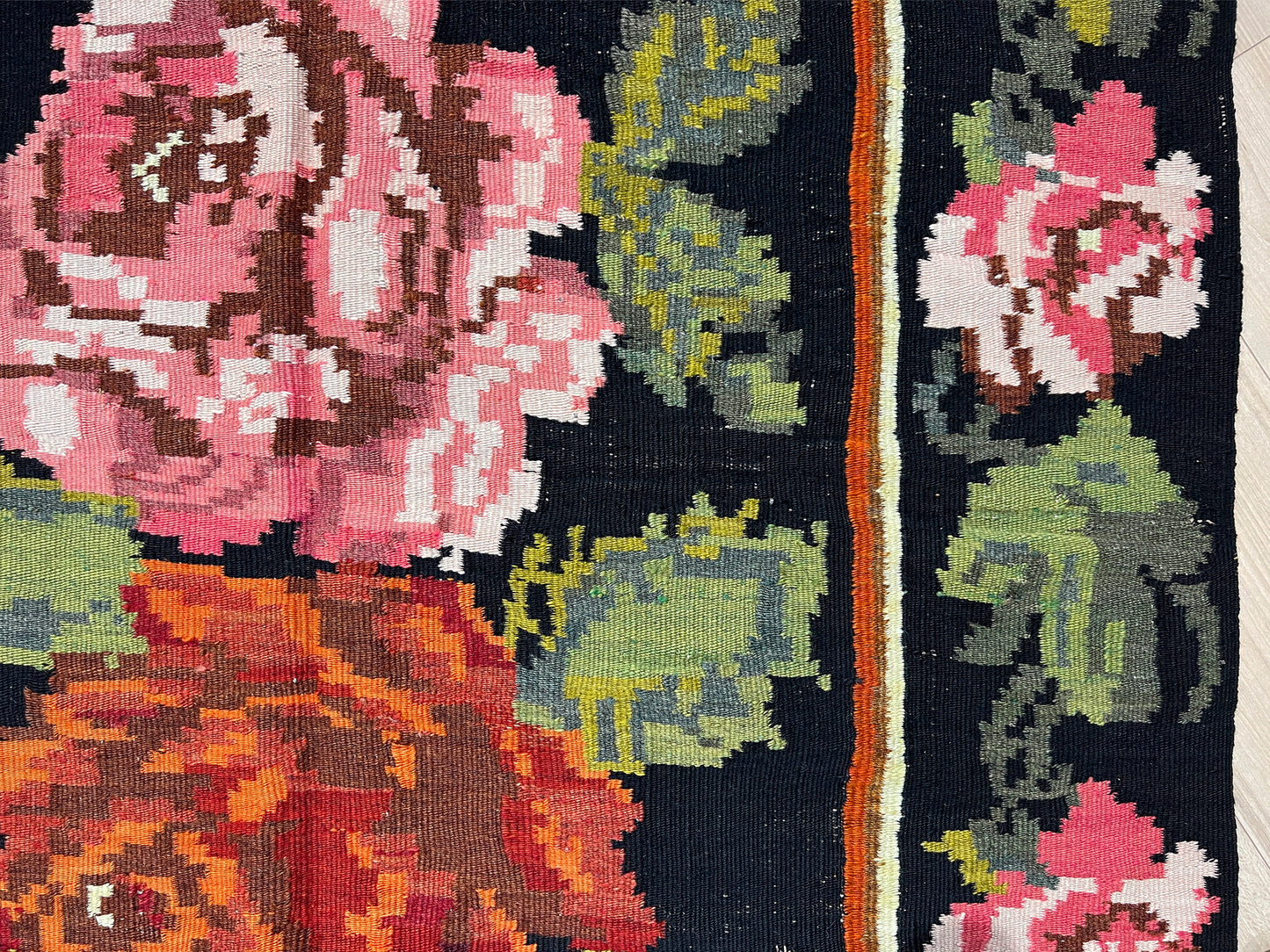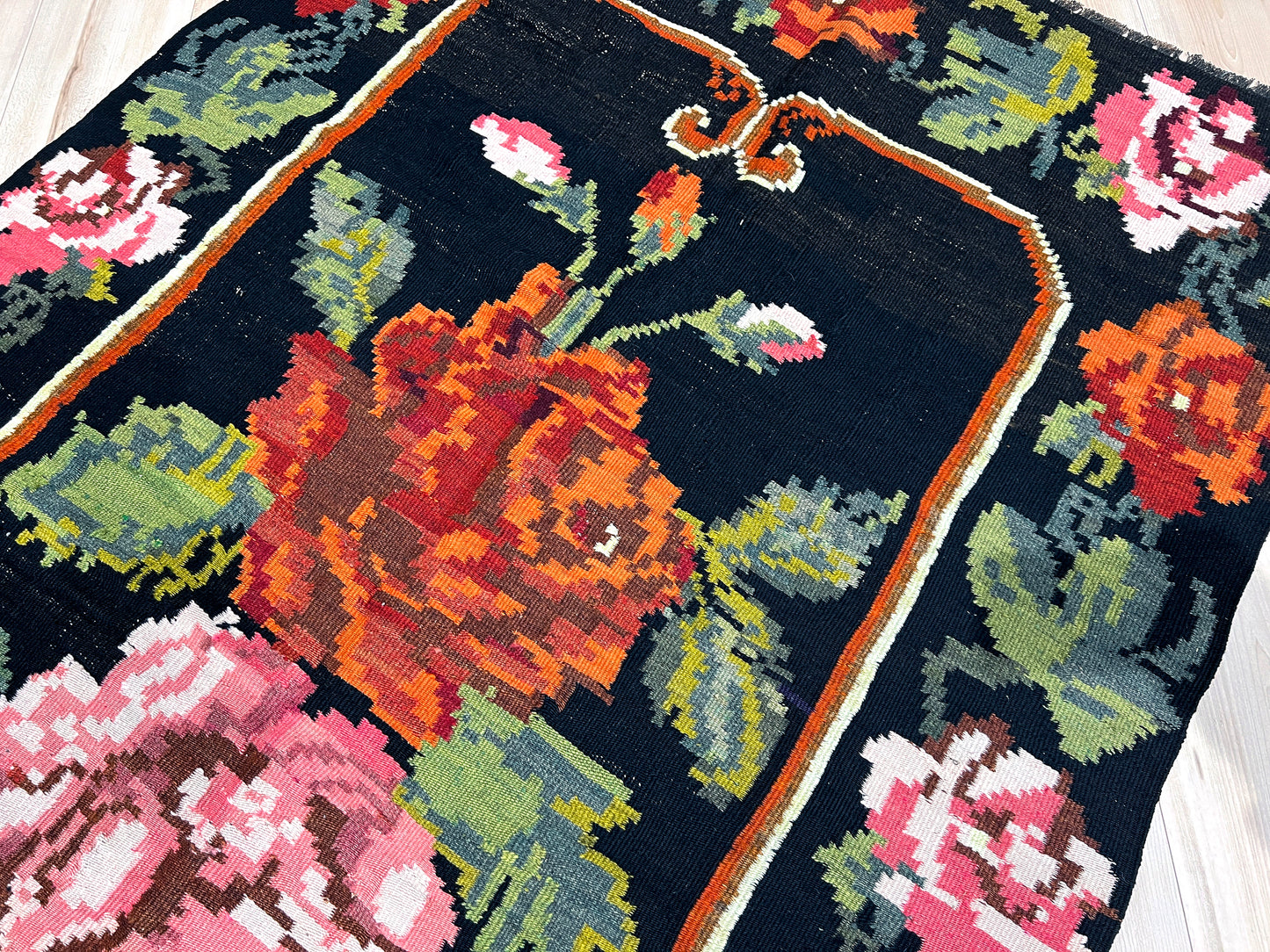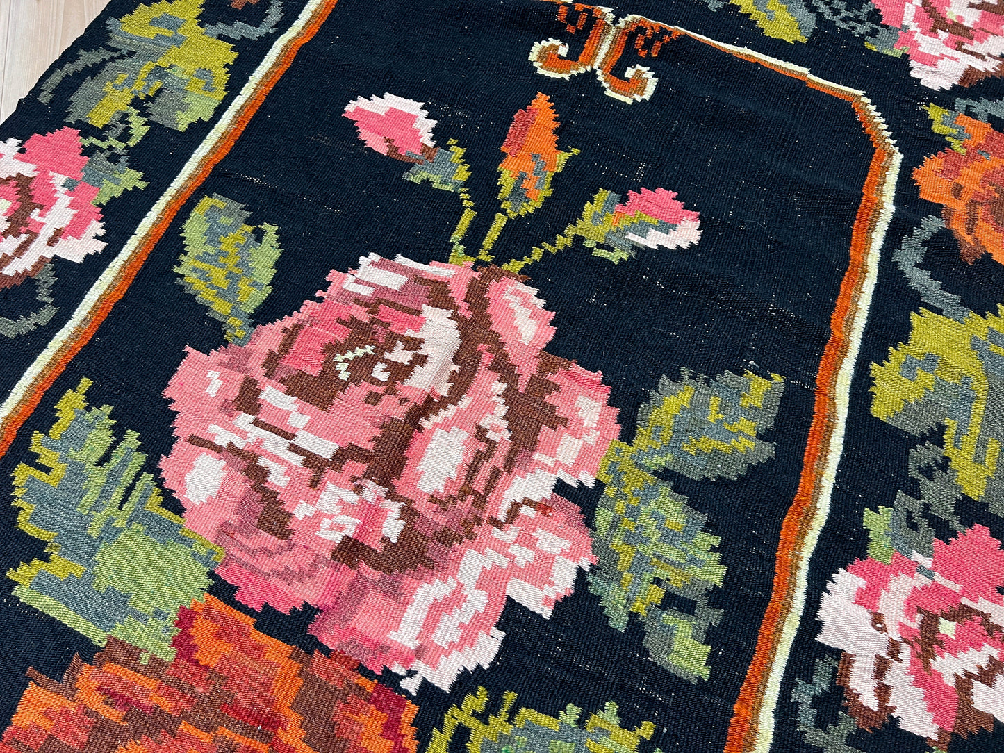 Rose Kilim Moldovan Vintage Rug • Handmade Wool Carpet • 5x7 Floral Flatweave Rug for Living Room, Bedroom, Dining, Kitchen & Nursery
