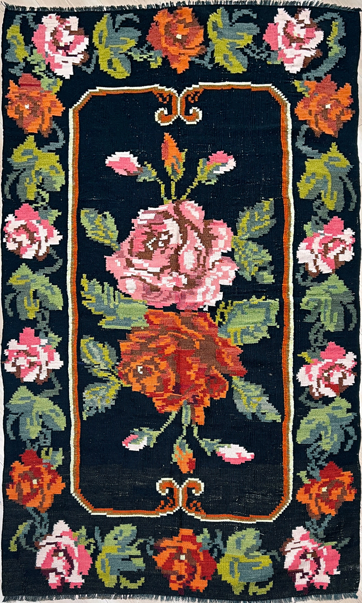 Rose Kilim • Handmade Moldovan Vintage Flatweave Rug (4'4"x7'9")