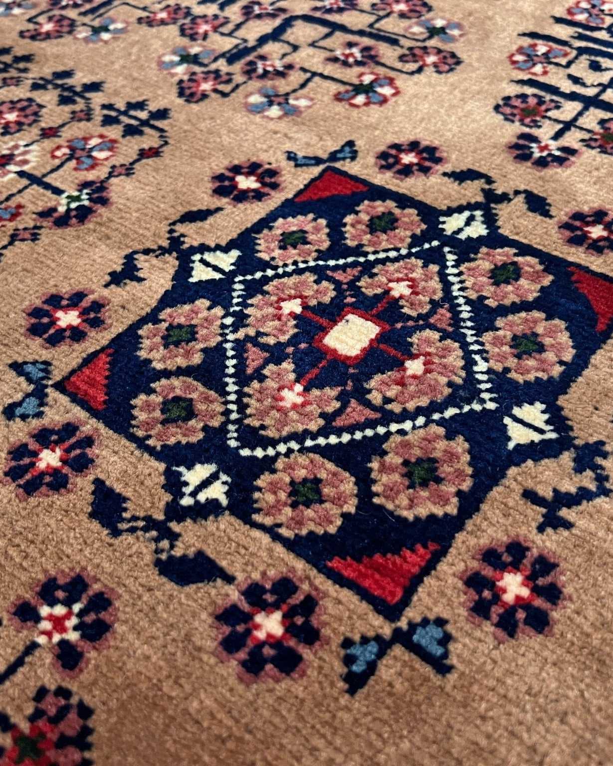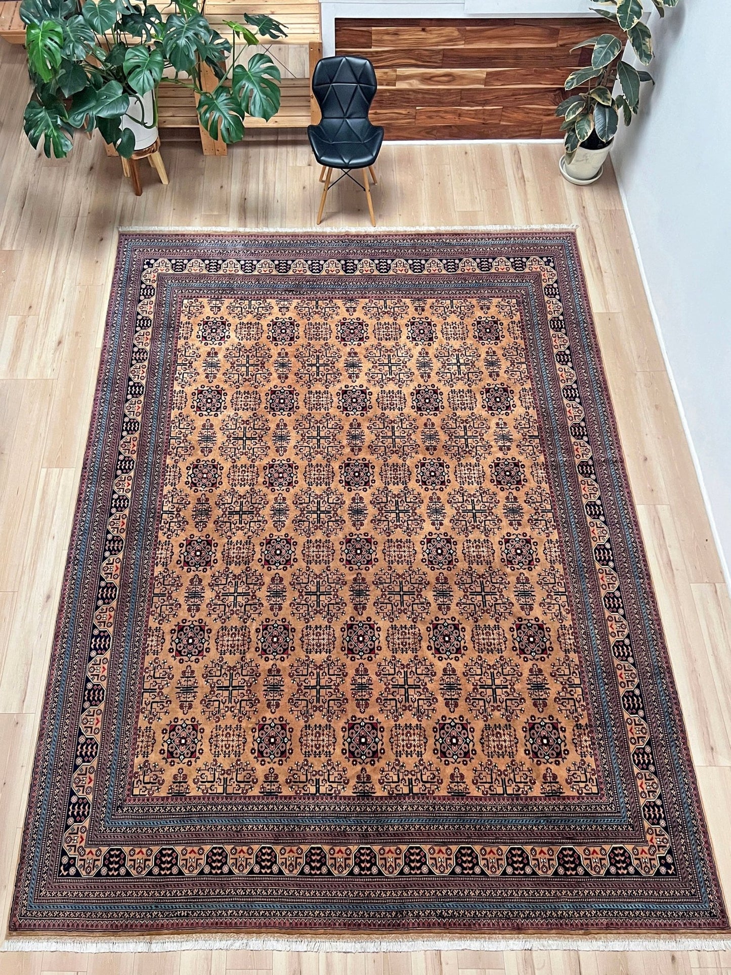 ✔ Introducing our special production Sand Bilcik Turkmen rug—a masterpiece of timeless elegance with a playful twist. This handmade beauty is crafted from top-quality wool, showcasing intricate medallion motifs that repeat across a sandy field, adding depth and character to its classic design. Framed by a series of ornate borders in deep navy and soft rust, each detail tells a story of heritage and refined craftsmanship. Perfect for grounding any room in warmth and sophistication, this rug invites you to revel in its artistry and charm.