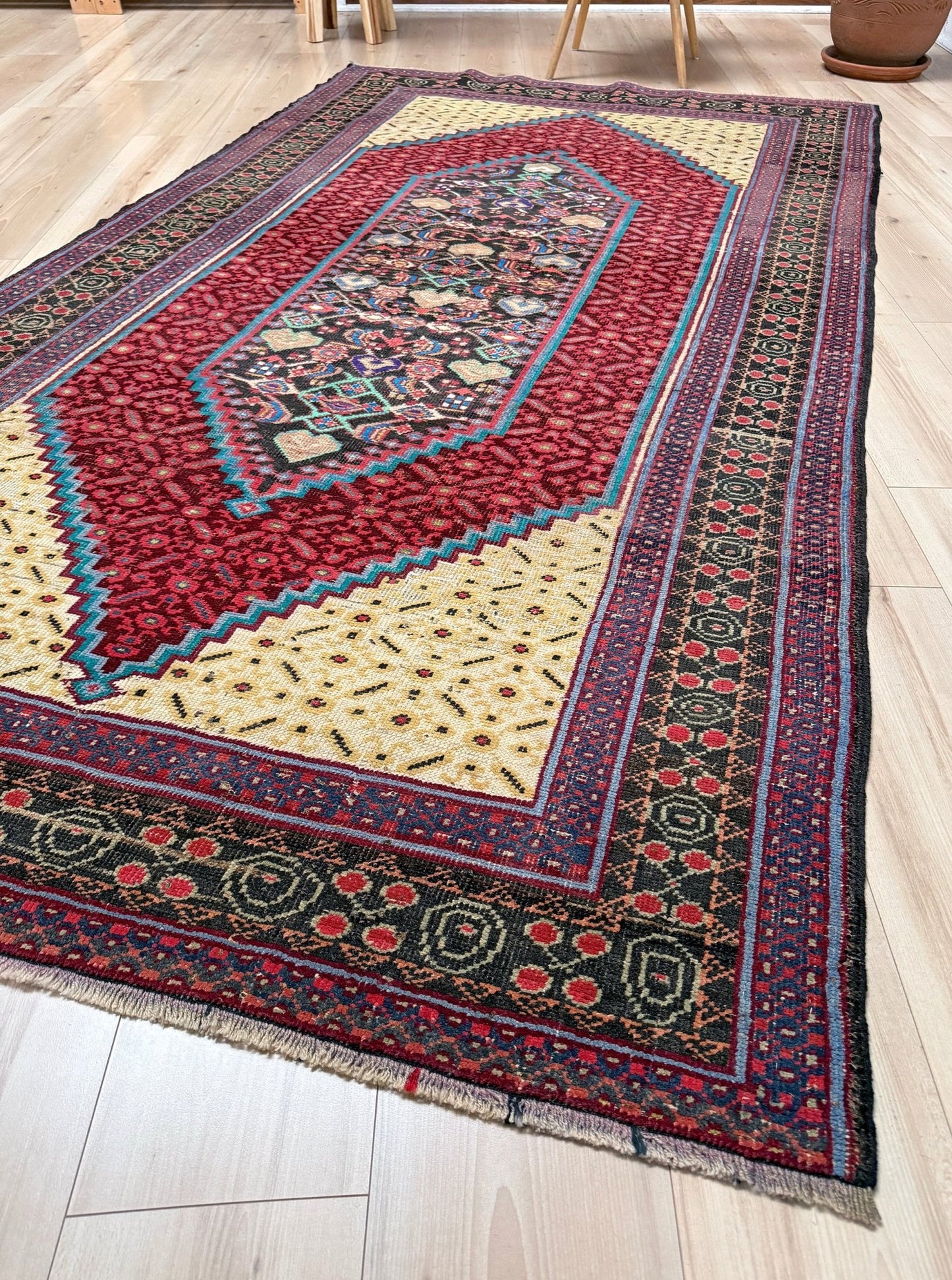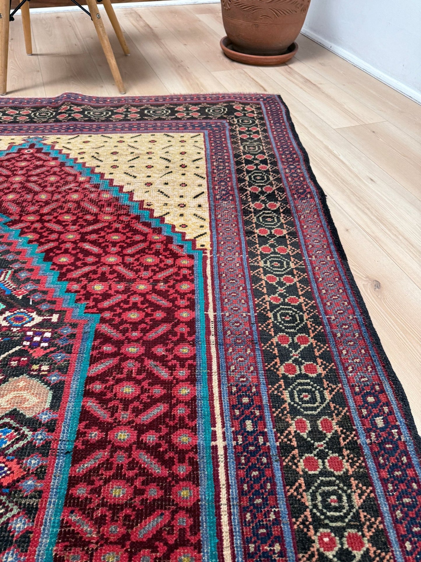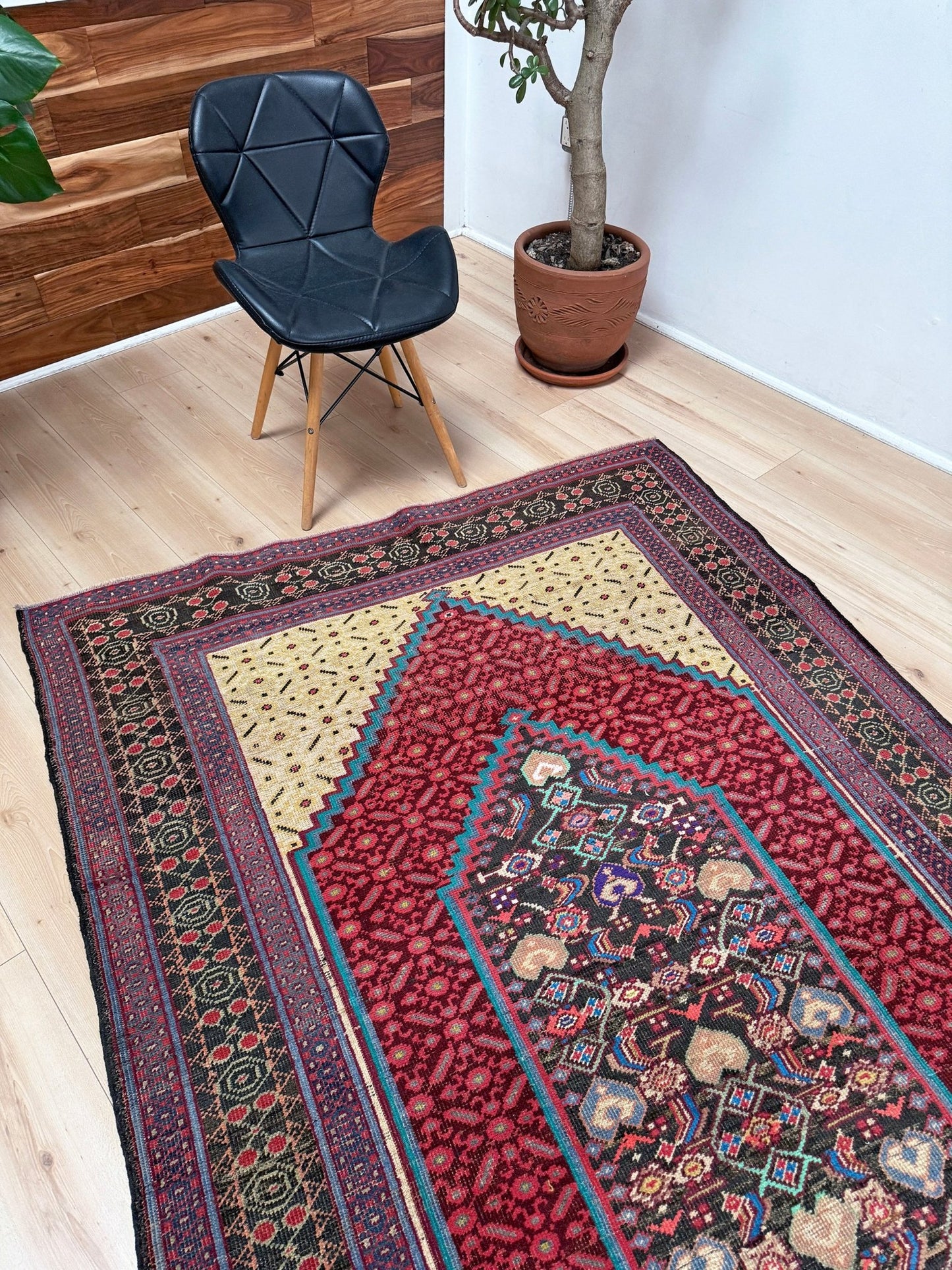 Semi-antique Armenian Rug w/ Senneh Design • Wool Handmade Carpet 5x9 Large Area Rug for Living Room, Dining, Bedroom & Office