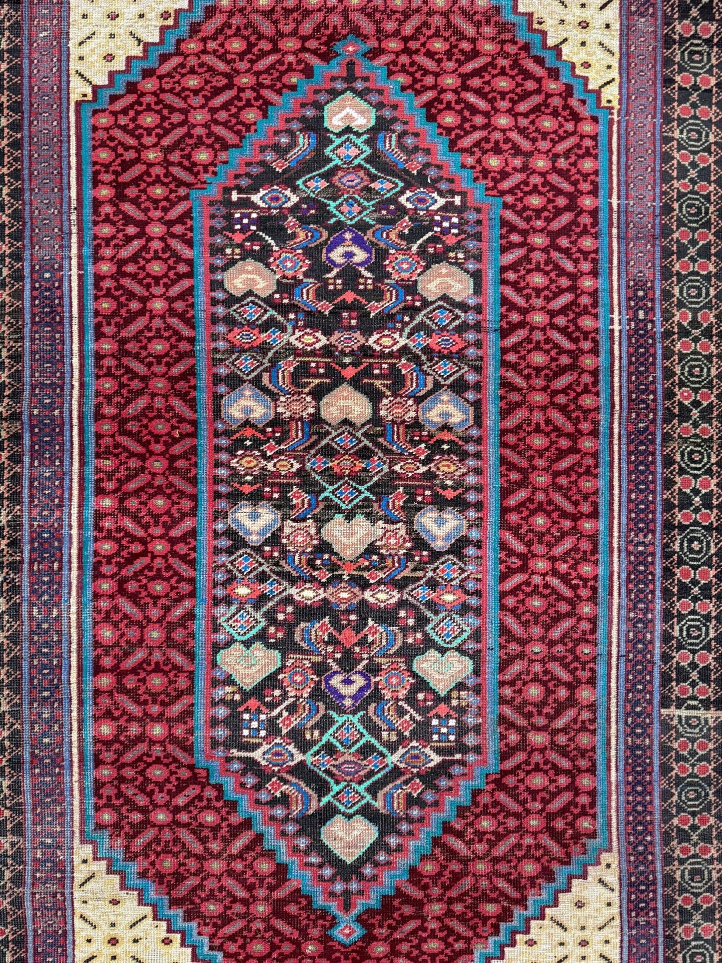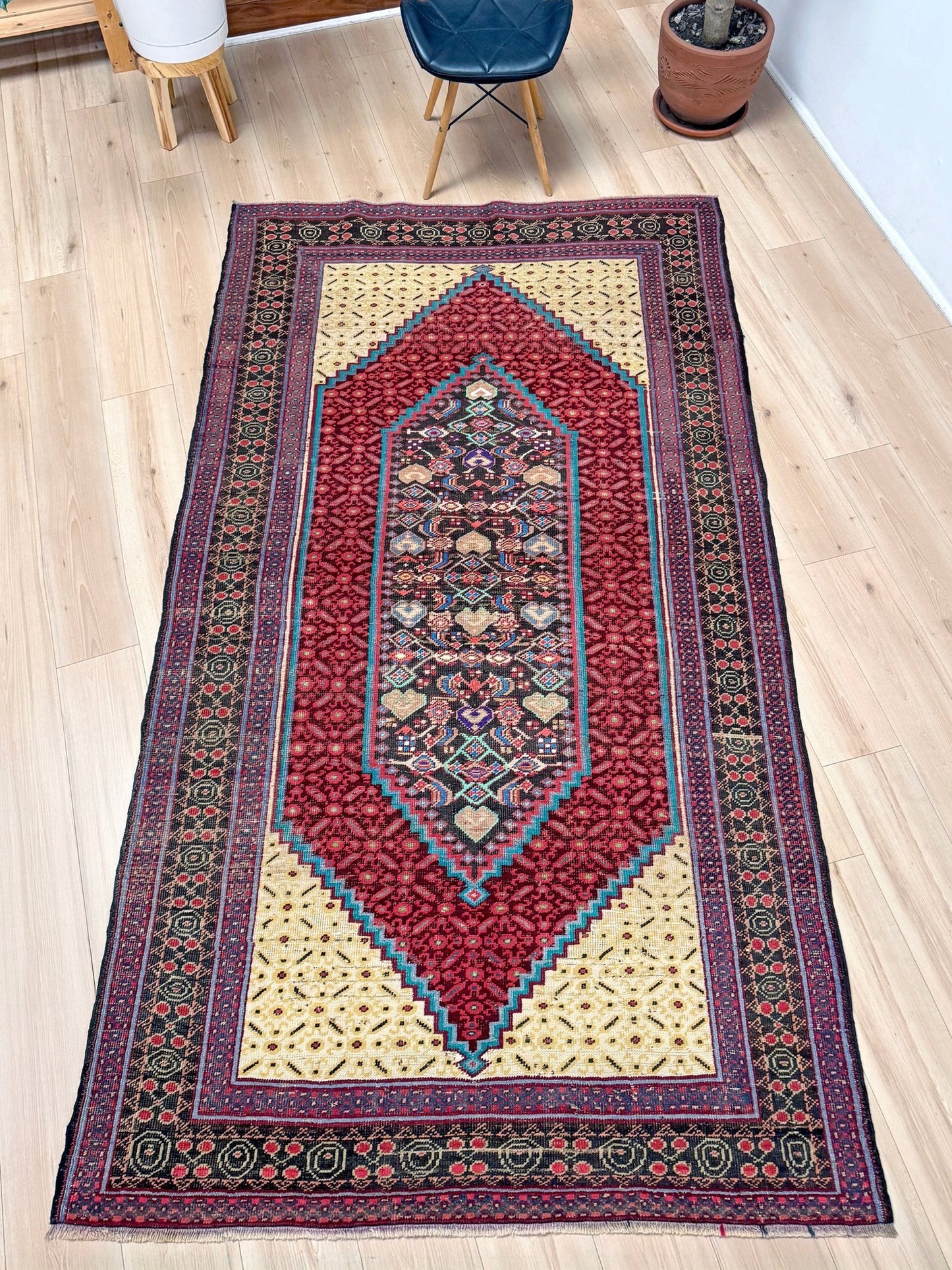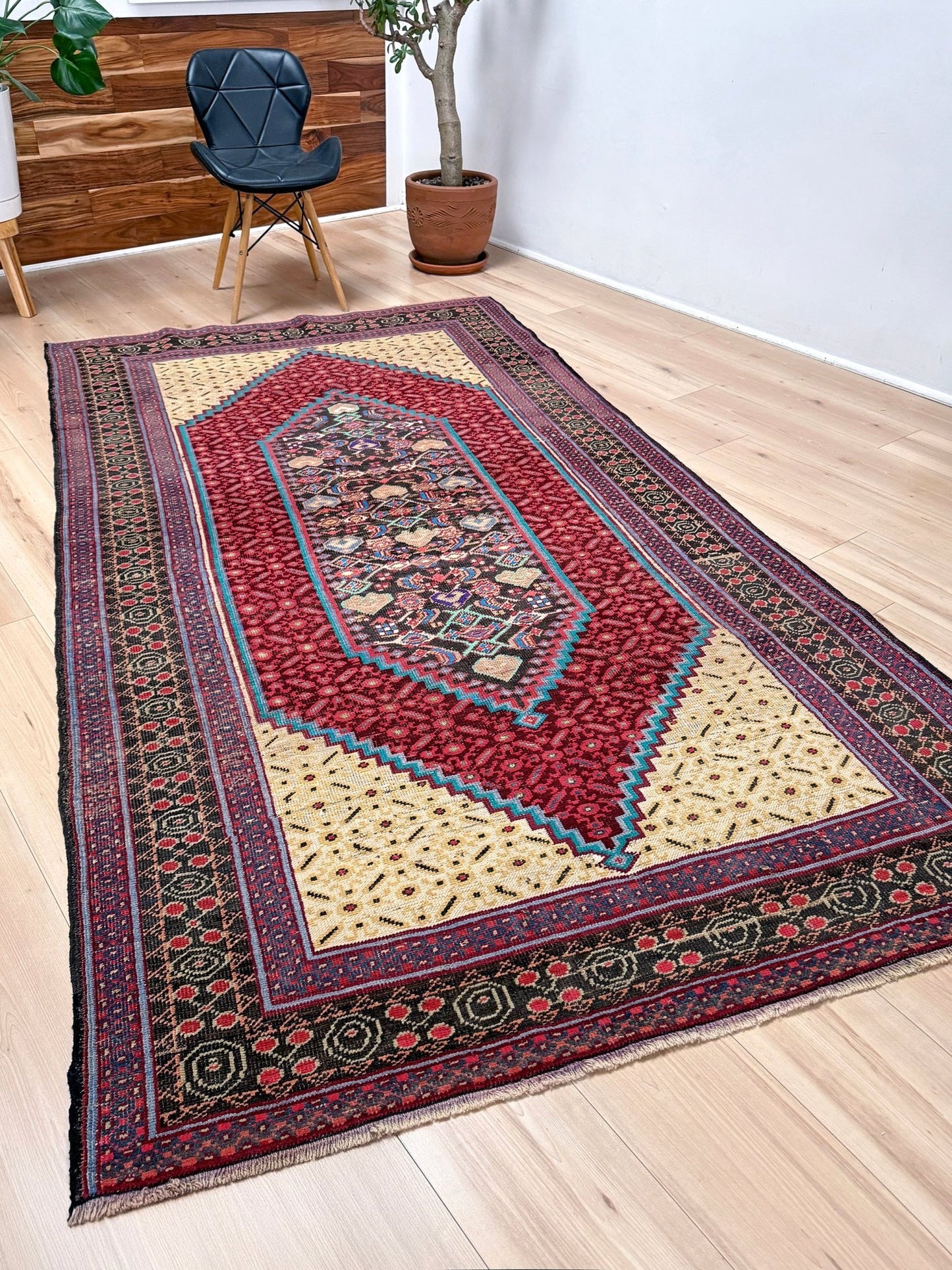 Semi-antique Armenian Rug w/ Senneh Design • Wool Handmade Carpet 5x9 Large Area Rug for Living Room, Dining, Bedroom & Office