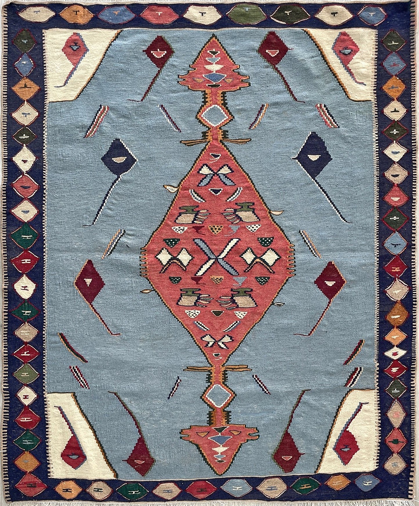Blue Senneh • Vintage Persian Kilim Rug (3'11"x4'8")