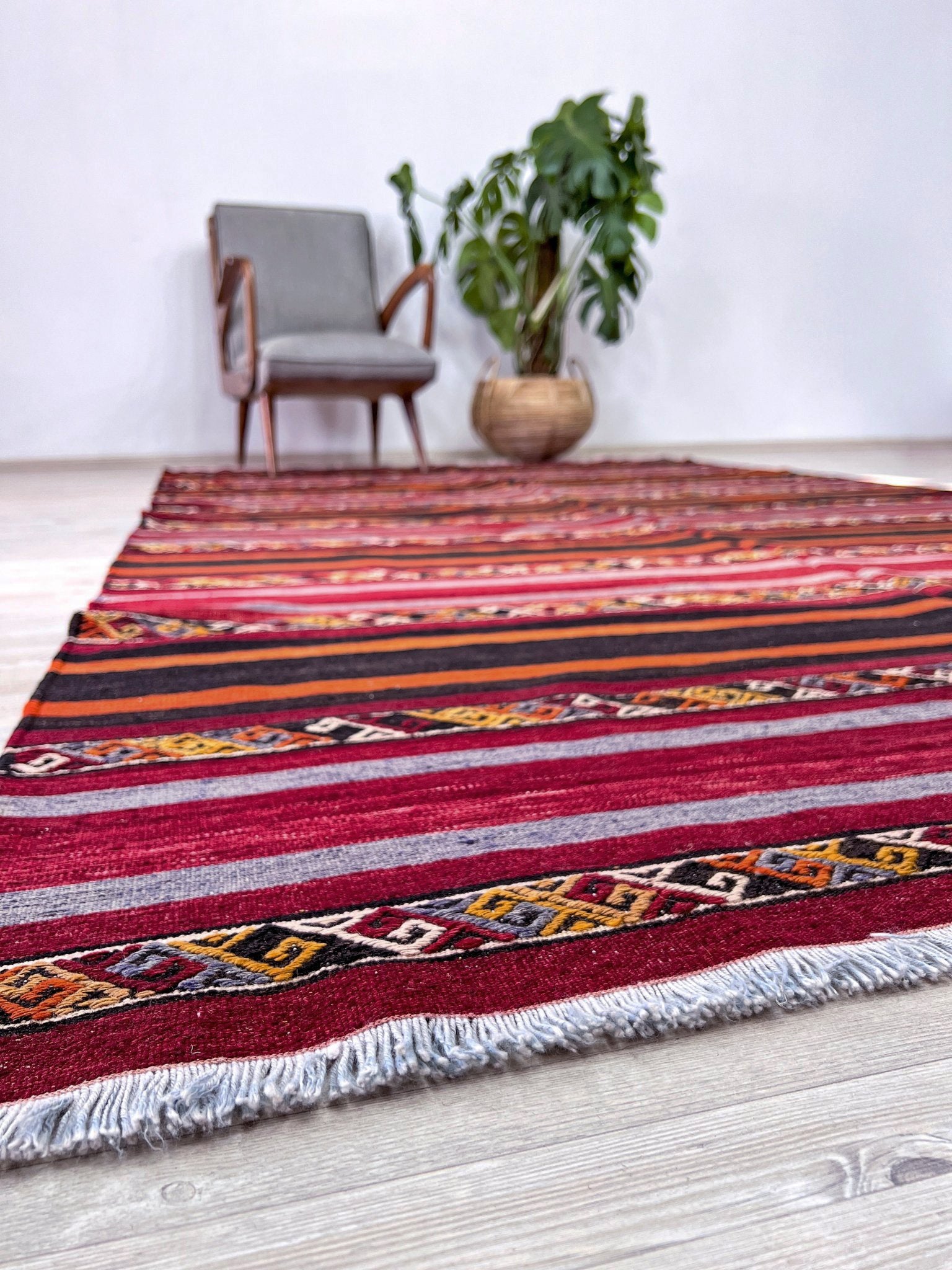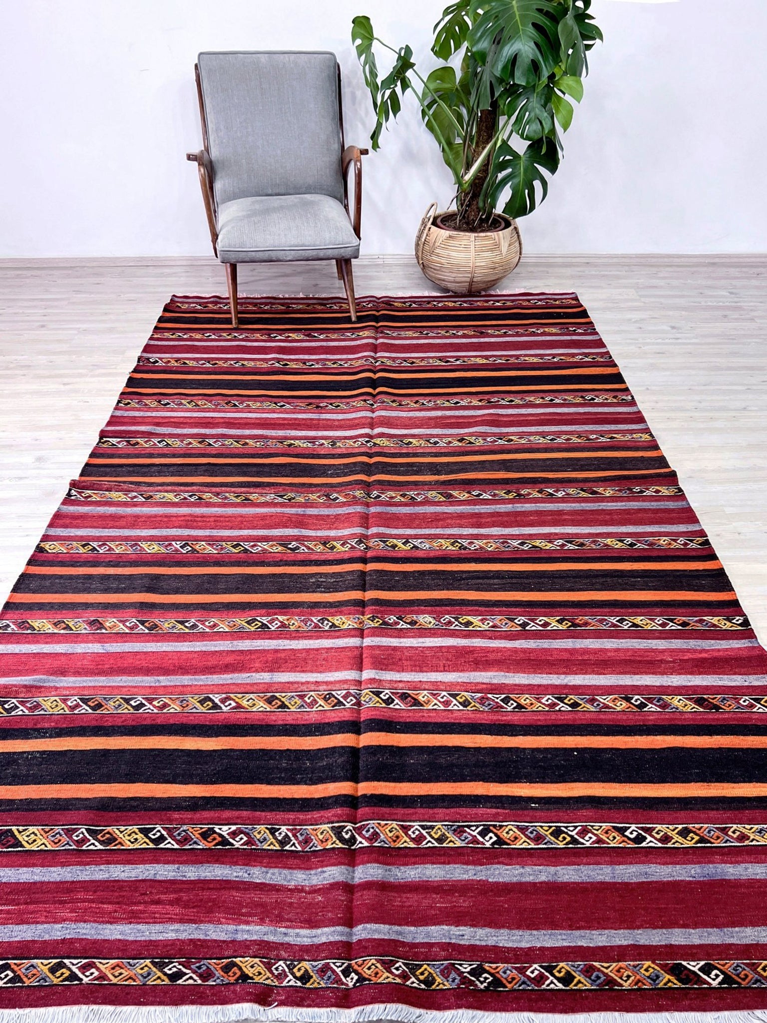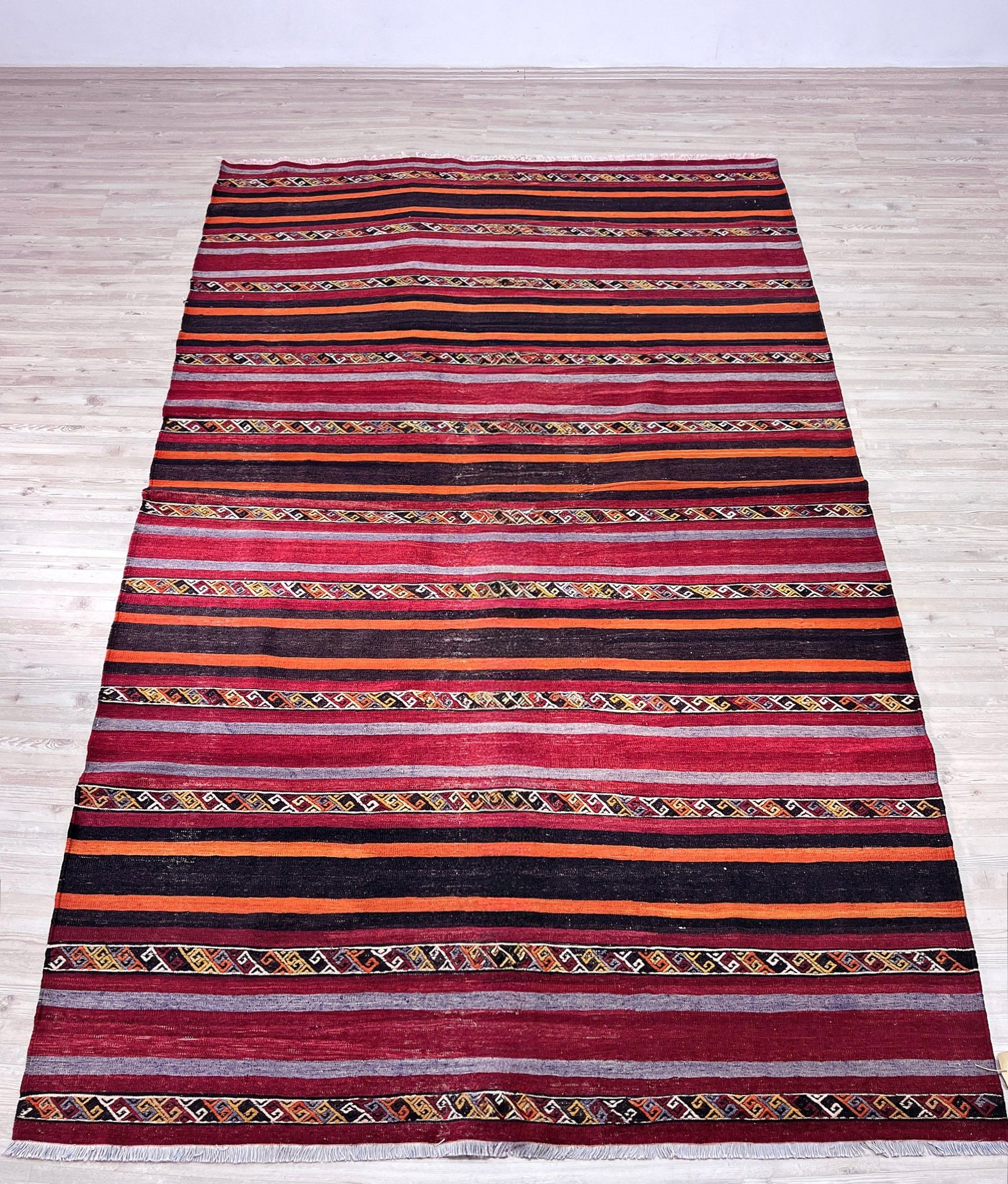 Turkish Vintage Kilim Rug • Handmade Wool Carpet • 6x10 Flatweave Area Rug for Living Room, Bedroom, Dining & Office