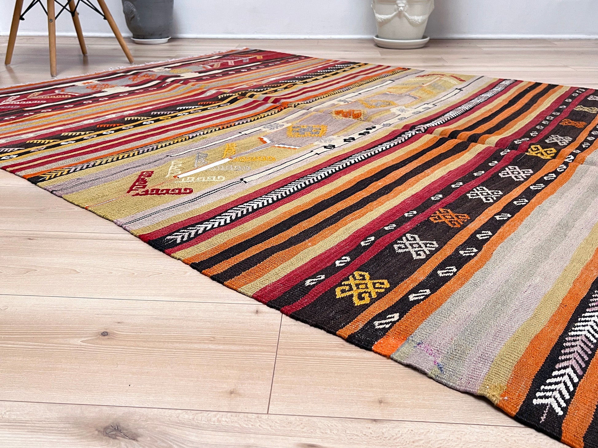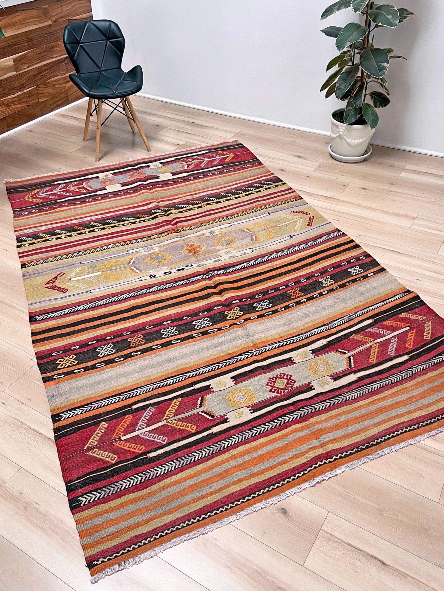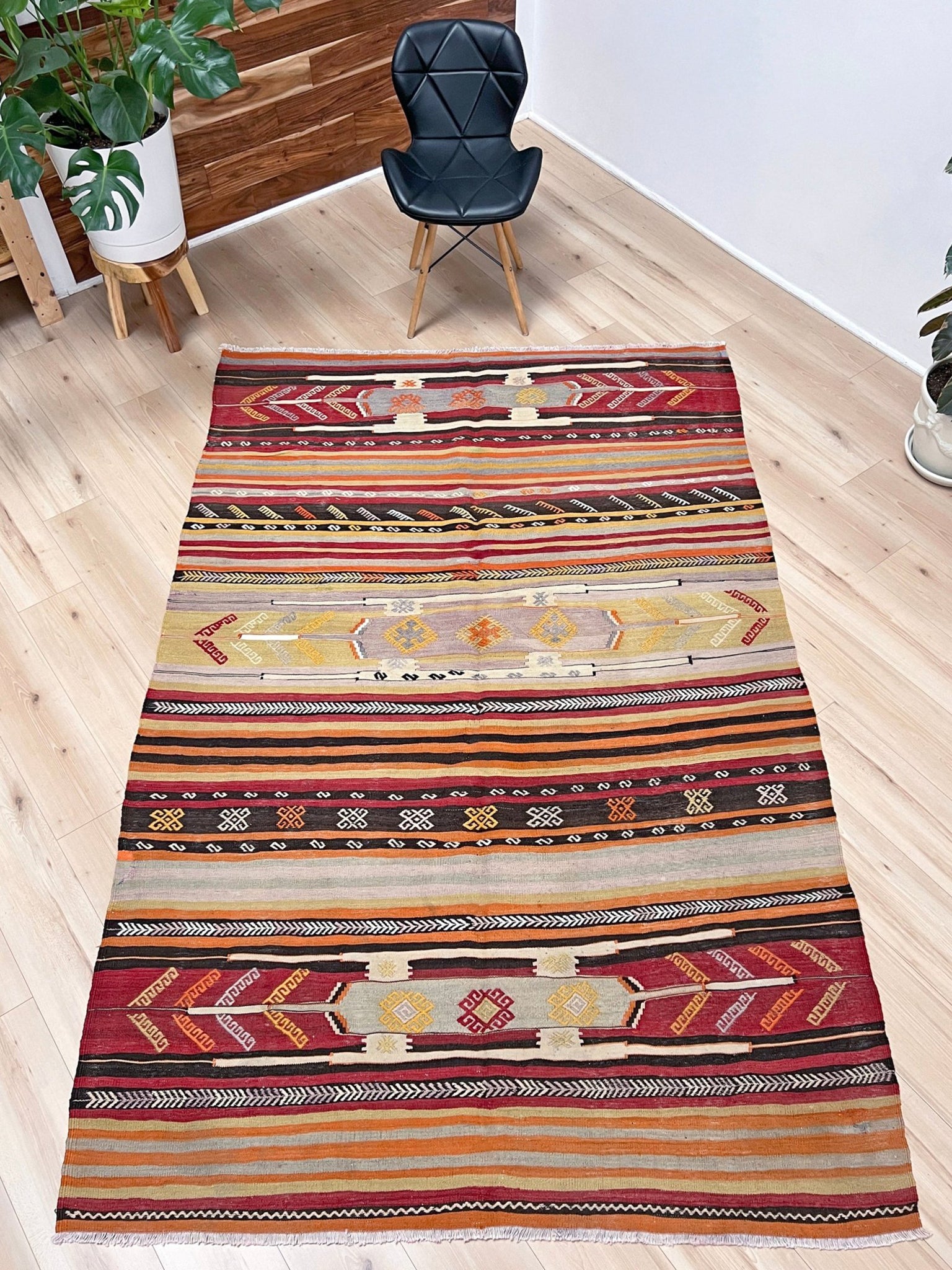 Sivas Lambali Turkish Vintage Kilim Rug • Handmade Wool Carpet • 6x9 Flatweave Rug for Living Room, Bedroom, Dining, Kitchen & Nursery