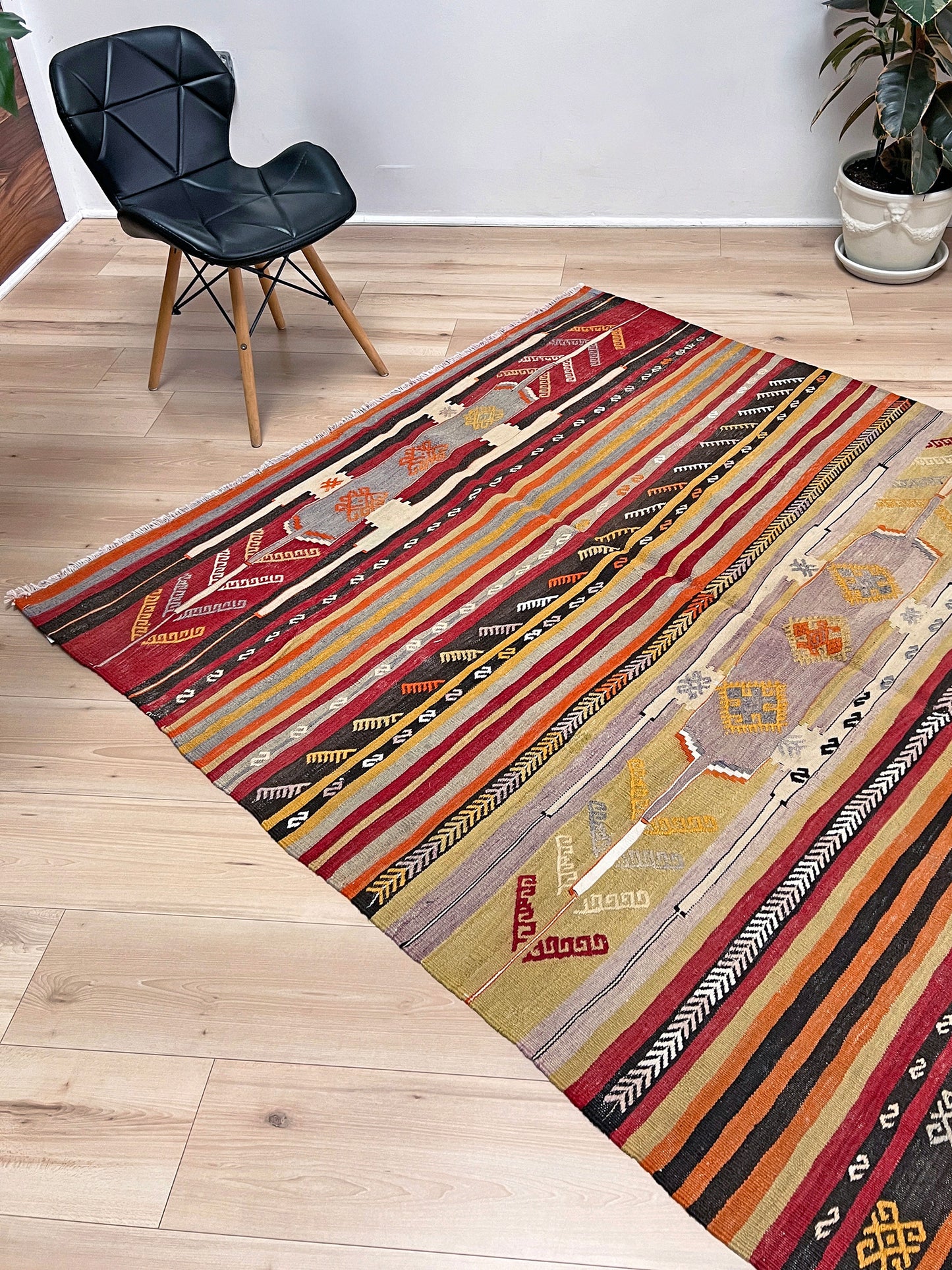 Sivas Lambali • Vintage Turkish Kilim Rug (5'7"x8'8")