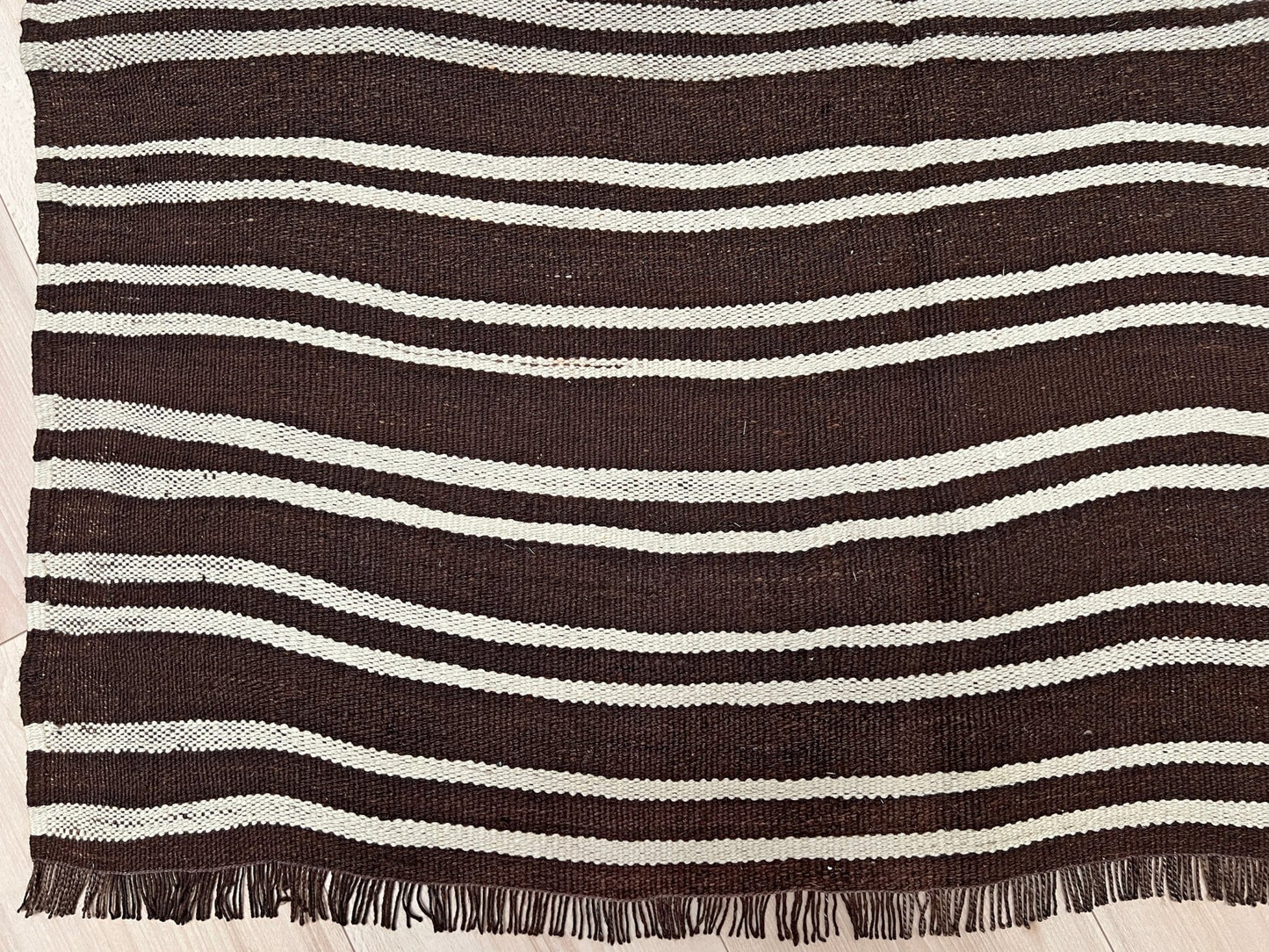 Add a touch of history and elegance to your home with this authentic striped Turkish Kilim rug.