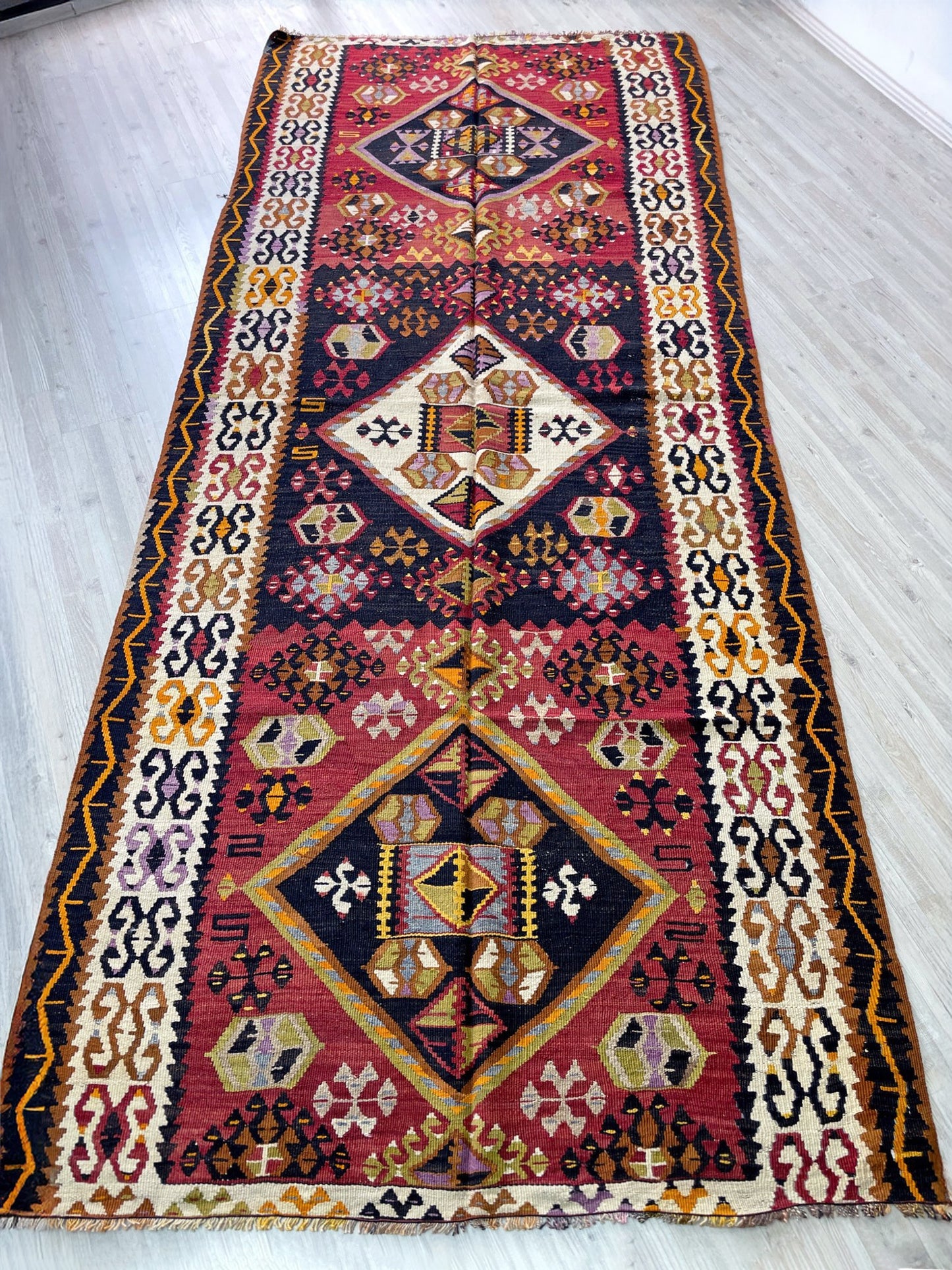 Kayseri Antique Turkish Kilim • Handmade Flatweave Runner Rug (4'5"x10'6")